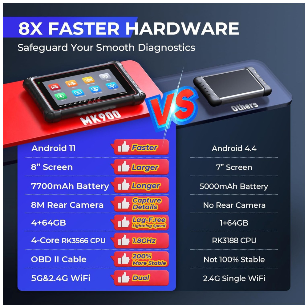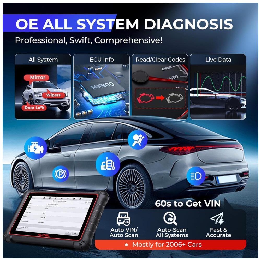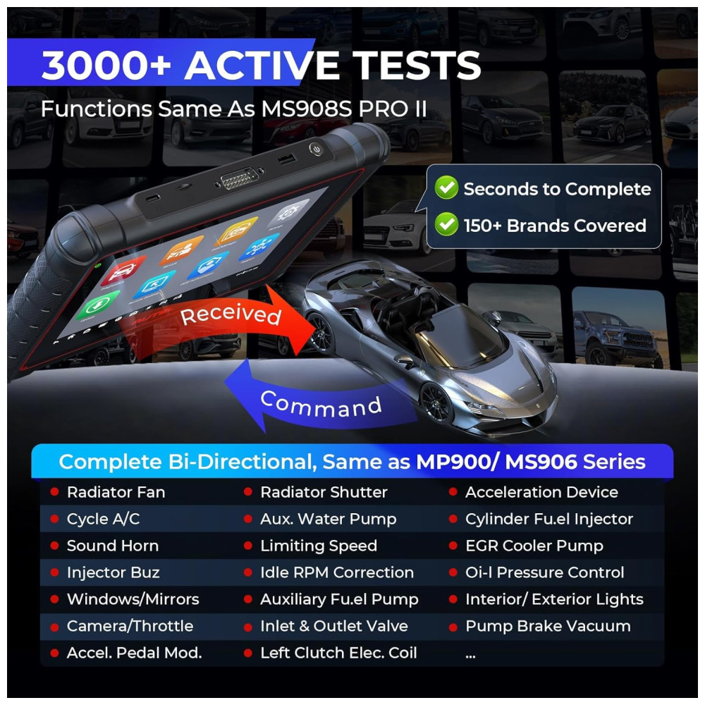 Ferramenta de digitalização altamente capaz em um ponto de preço DIY Pode acessar todos os módulos e oferece testes bidirecionais completos, capacidade de adicionar chaveiros, fazer alguma codificação, teste de equilíbrio de energia e teste de vazamento, redefinir CVIs de transmissão e permitir um aprendizado rápido, Recupere informações da ECU, reaprendizado ocioso, falha de ignição encontrada e corrigida, Reinicialização do óleo de suporte , ABS, SRS, TPMS, EPB, SAS, DPF, Reinicializações BMS e muito mais.