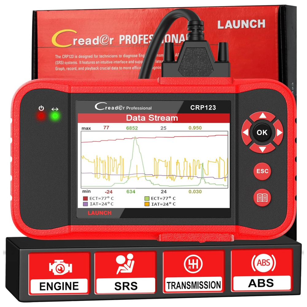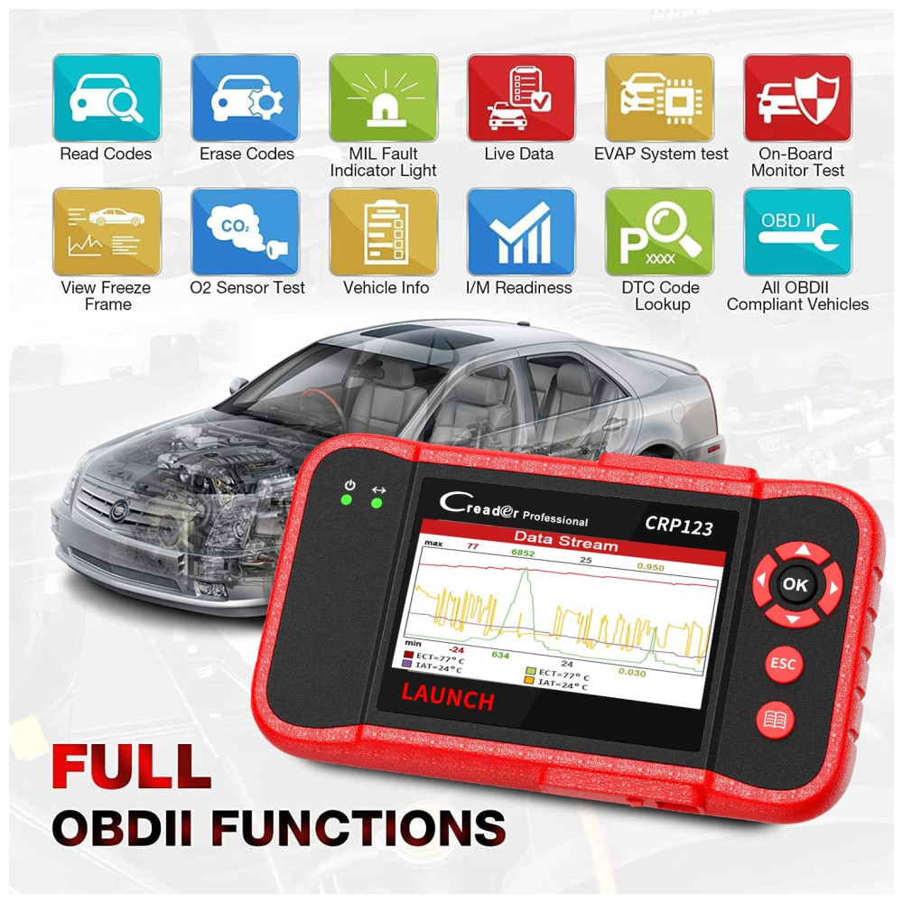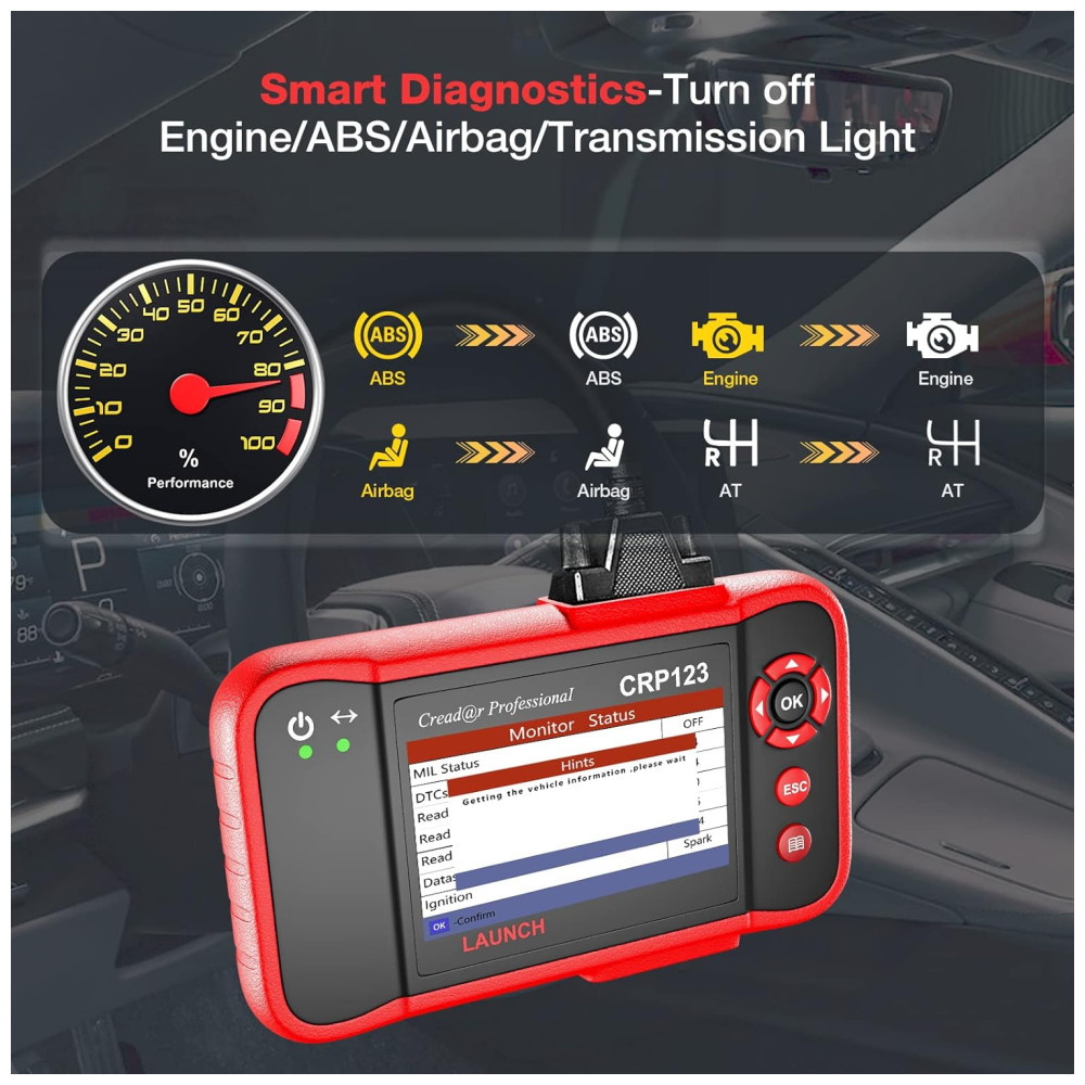 O Scanner OBD2 LAUNCH CRP123 V2.0 Elite é a solução completa para o diagnóstico de veículos, pronto para uso imediato.Oferece 4 sistemas de varredura, 3 serviços de redefinição. Além disso, conta com 3 novos resets: Reset de Óleo, Adaptação do Acelerador e Reaprendizado SAS. Com visualização intuitiva de dados ao vivo, suporta os sistemas de MOTOR, AT, ABS e SRS, permitindo o registro, reprodução e impressão de dados. Realiza leitura e redefinição de códigos para motores, ABS, SRS e transmissão.
