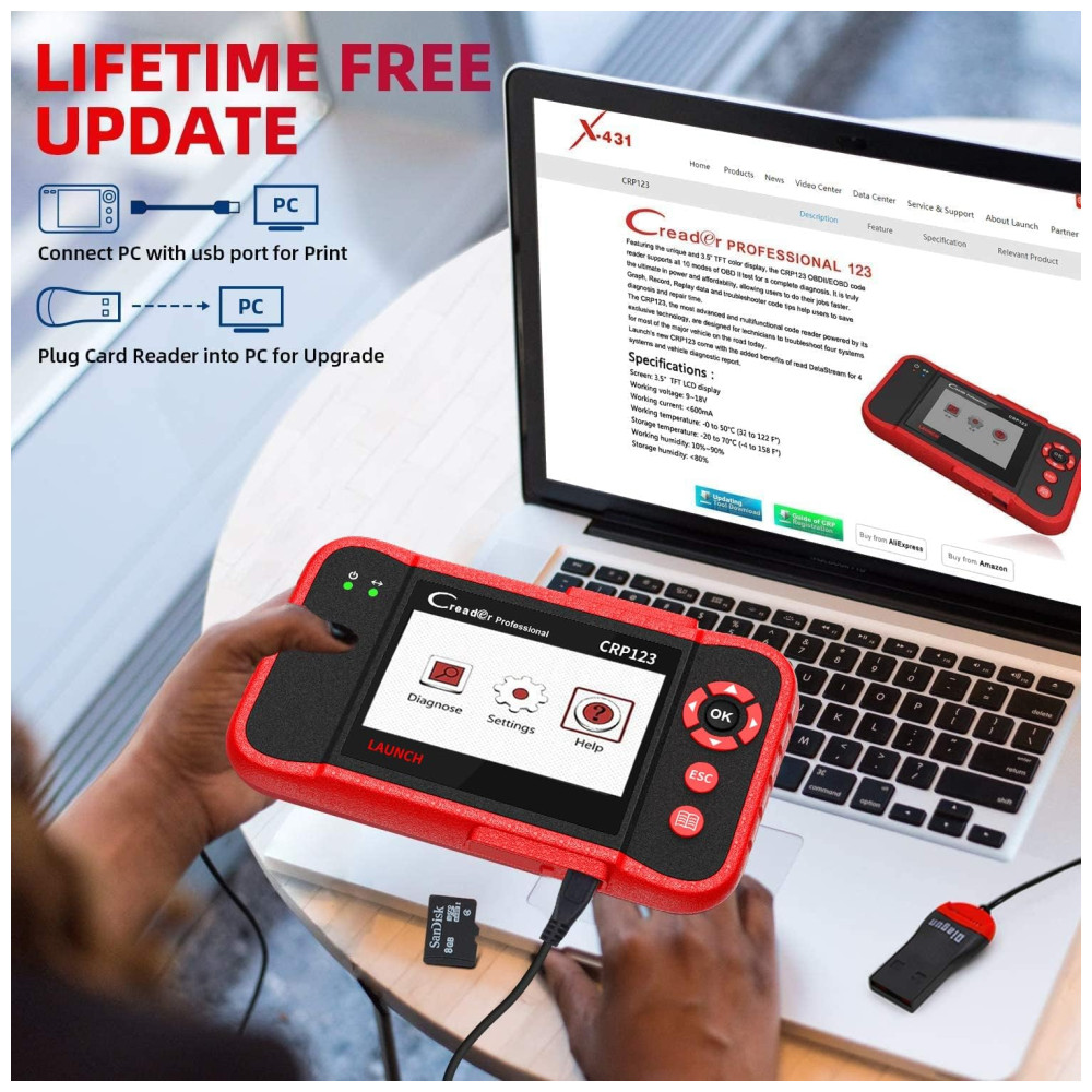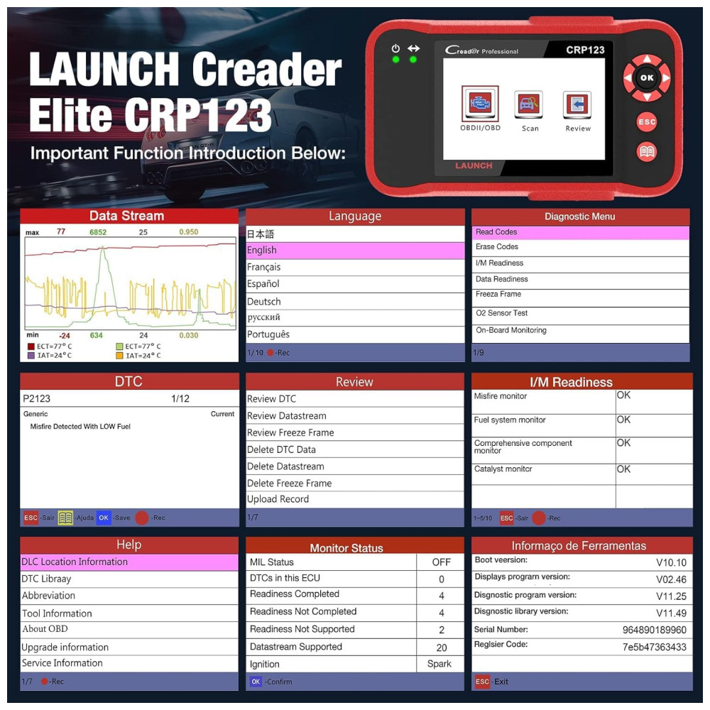 Scanner OBD2 LAUNCH CRP123 V2.0 Elite: Ferramenta de Diagnóstico Automotivo Completa com Reset de Óleo Adaptação do Acelerador e Reaprendizado SAS