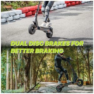 Para garantir a segurança durante o uso, a scooter G4 para adultos é equipada com freios a disco dianteiros e traseiros, que oferecem excelente capacidade de frenagem, e possui um sistema avançado de absorção de choque para uma condução confortável e segura. O pedal é antiderrapante, reforçando ainda mais a segurança do usuário.
