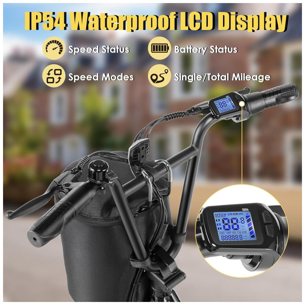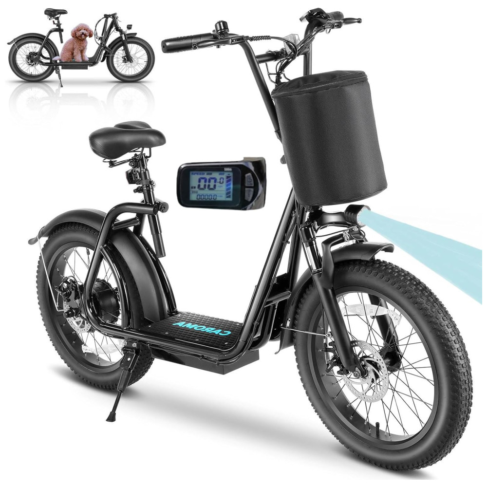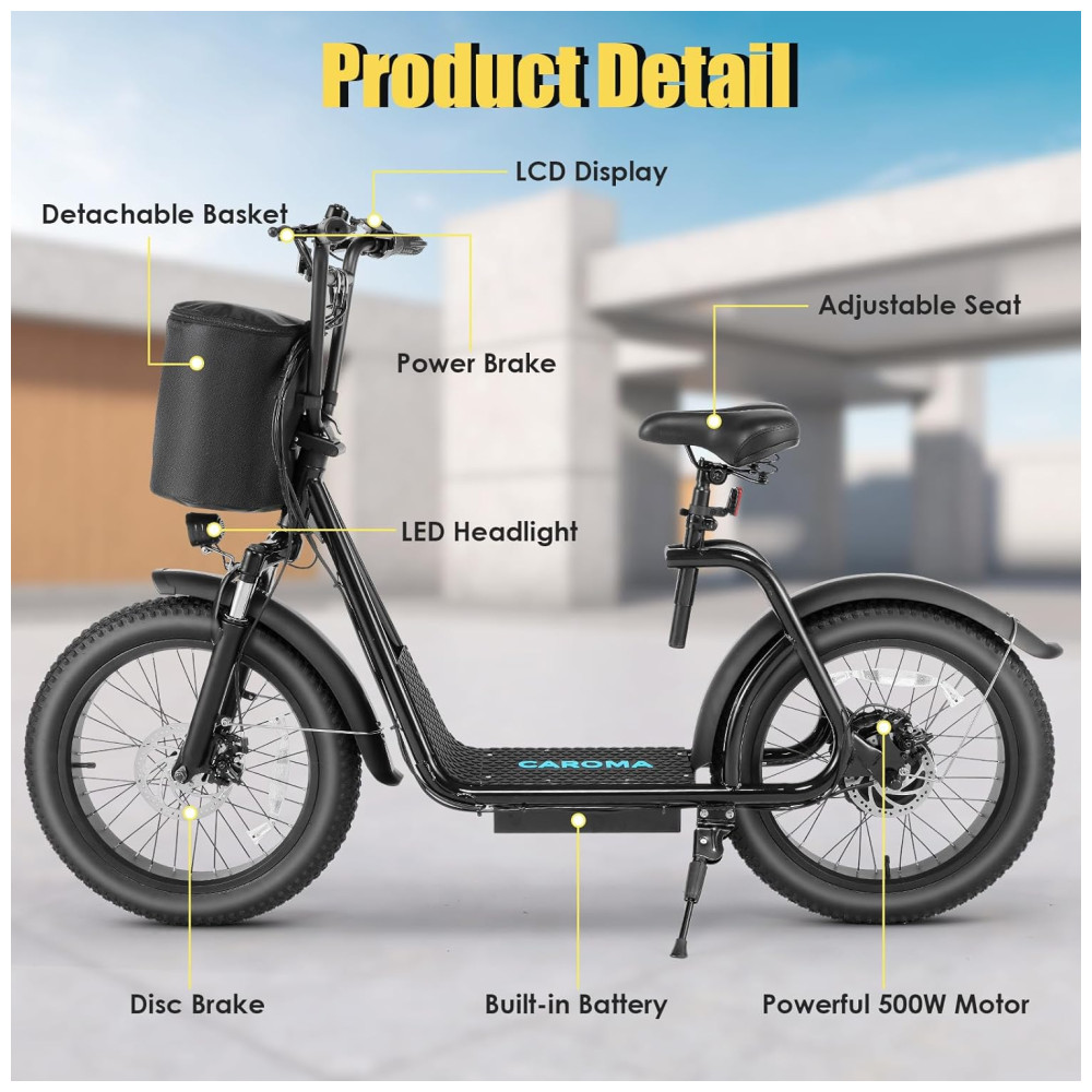 Scooter Elétrica para Adultos até 136 kg Velocidade Máxima de 32 km/h e Alcance de 48 km com Tela de LCD Assento Ajustável e Cesta Removível 819W Caroma P3 Preta