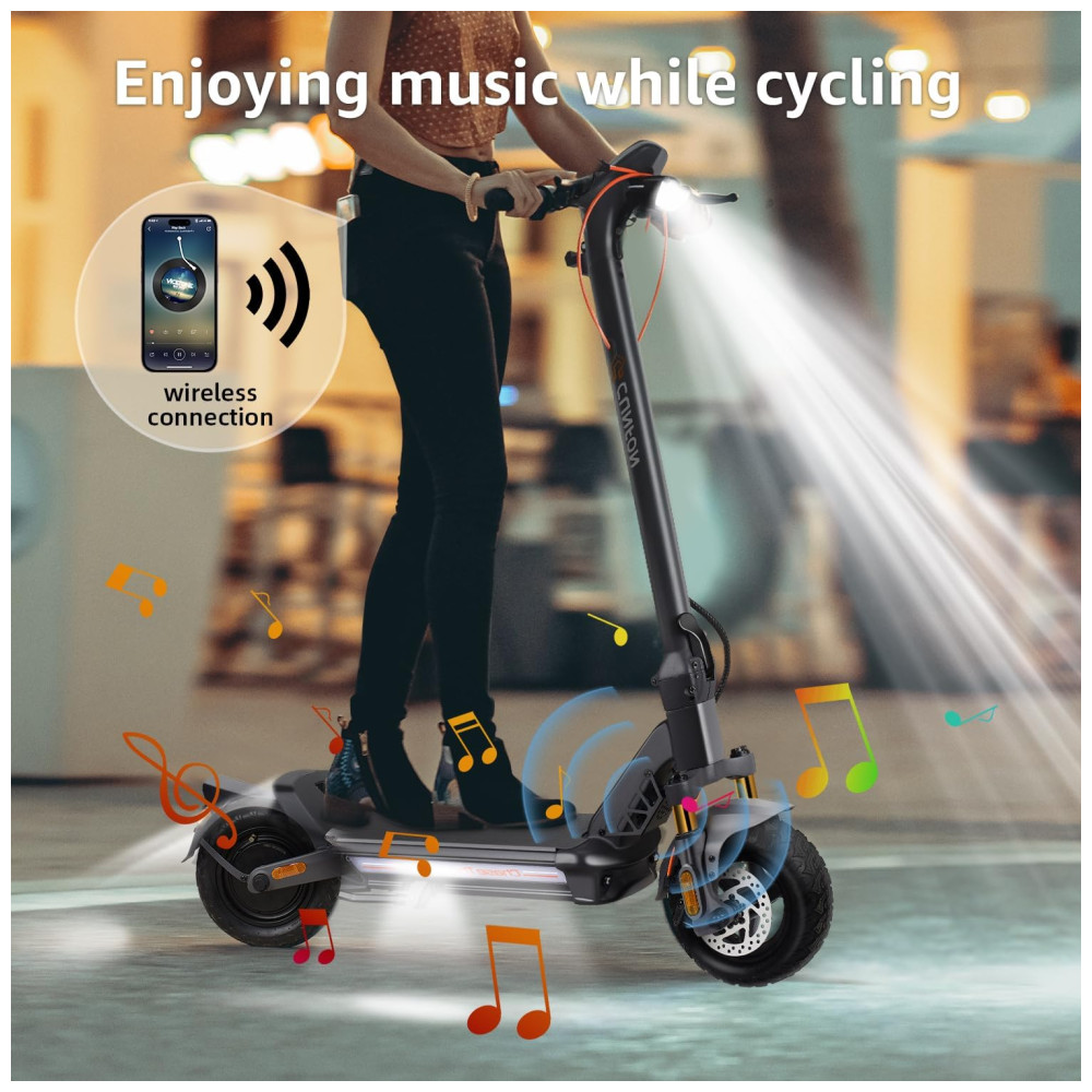 Os pneus pneumáticos allterrain de baixa pressão garantem maior resistência ao desgaste e uma vida útil mais longa do pneu. Além disso, a scooter possui um sistema de freio duplo dianteiro e freio a disco traseiro eletrônico, que melhora o desempenho de frenagem.