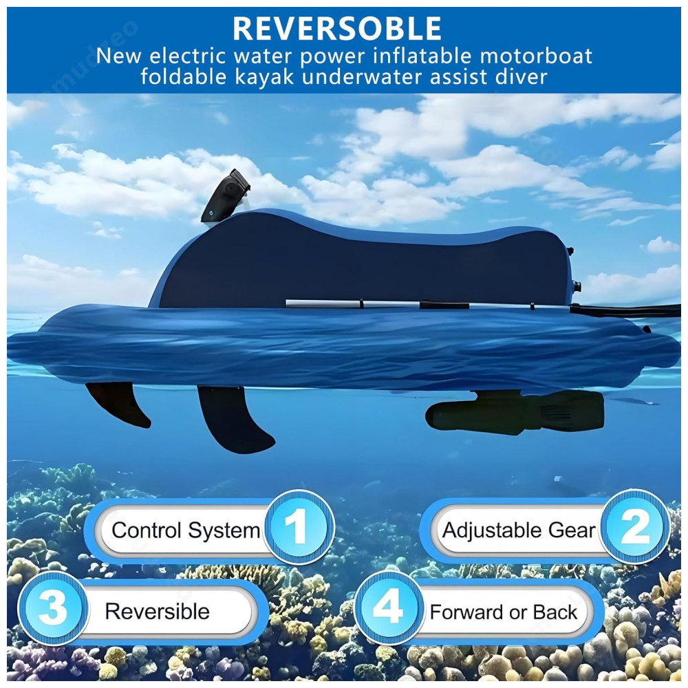 Scooter Subaquática Elétrica vnmudzeo Azul com Design Dual-Fin Upgradado Controle Remoto 10 Velocidades Manete Removível Modelo Motorboat 12V