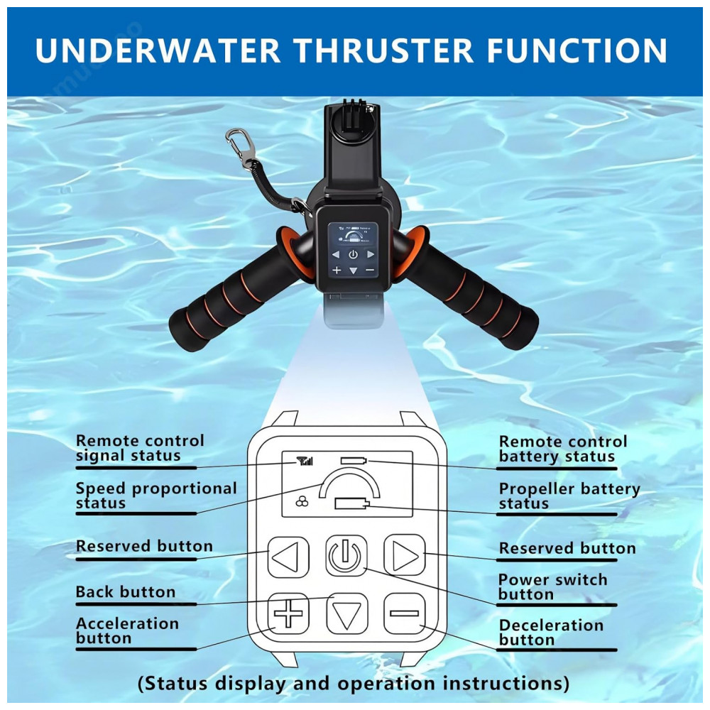 Scooter Subaquática Elétrica vnmudzeo Azul com Motor Brushless 500W Controle Remoto 10 Velocidades Manete Rotativo Removível Bateria 10000/16000mAh12V