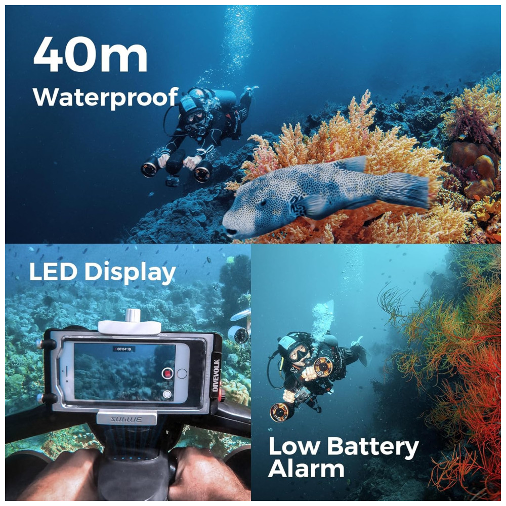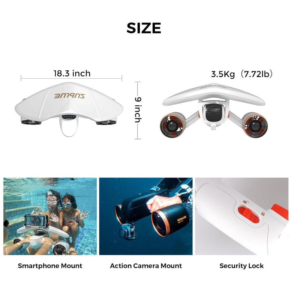 Scooter Subaquática Propulsor de Mergulho com Motor Duplo e Suporte de Câmera para Crianças e Adultos Sublue Branco e Dourado