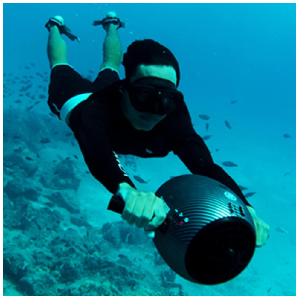 A flutuação positiva evita que o JETPOD PRO afunde, quando o seascooter for liberado ele flutuará imediatamente de volta para a superfície. Compacta e fácil de usar, o JETPOD PRO é a única scooter dobrável do mercado, basta abrir as alças e você está pronto para começar O JETPOD PRO Gears possui 3 velocidades, com tempo de execução de 65 minutos, tempo de recarga de 3 horas, peso de 3,79 quilos e bateria Lithium Ion 14.8V10AH. Além disso, vem com um suporte de câmera embutido, mas a câmera não está incluída.