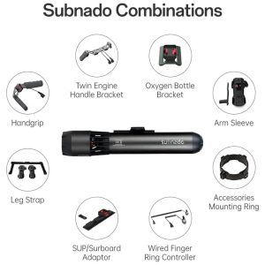 O controlador de anel de dedo pode controlar o Subnado com um único dedo e os vários acessórios de suporte de montagem permitem que ele seja fixado em qualquer lugar dos braços ou pernas, e até mesmo em um cilindro de gás, liberando suas mãos. O anel de montagem pode adicionar até 3 acessórios extras, incluindo, entre outros, uma GoPro e uma luz de preenchimento subaquática, melhorando a estabilidade para gravar vídeos. Os suportes da prancha de sup e a prancha de flutuação aumentam a diversão das atividades sobre a água.