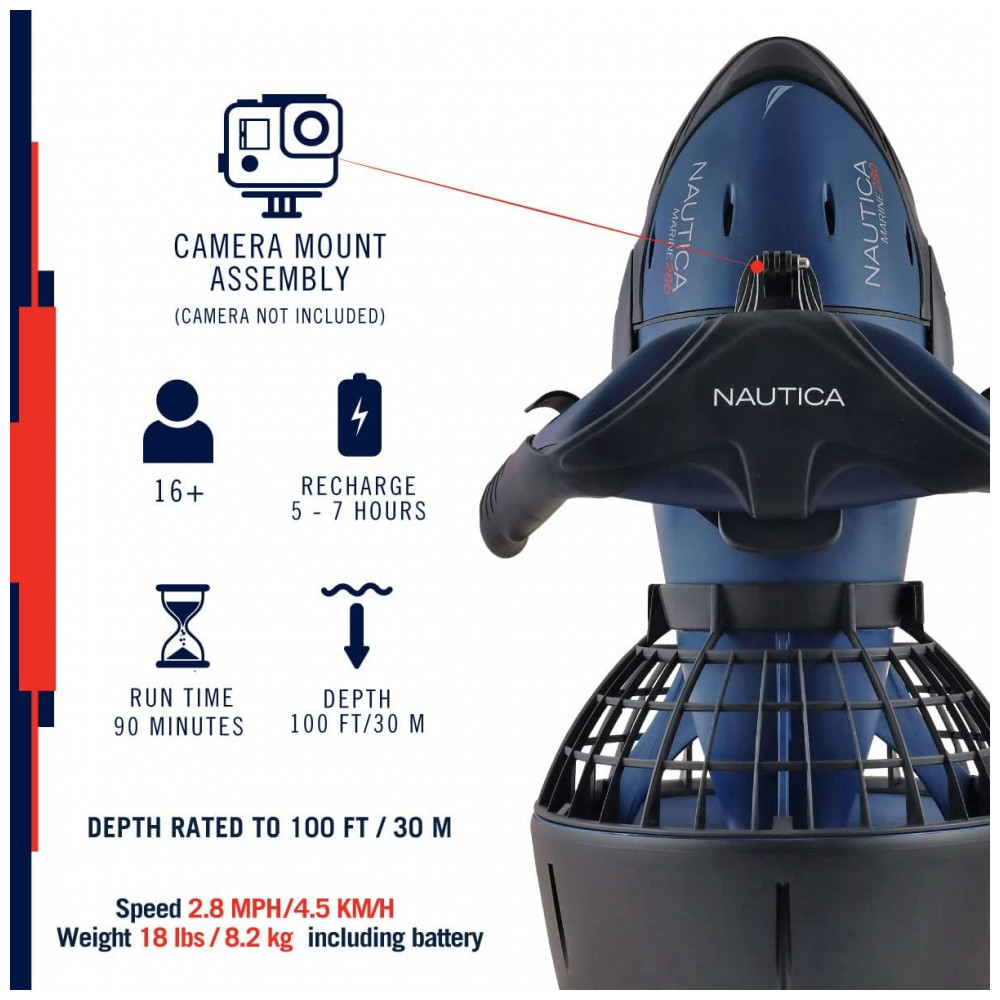 Scooter Subaquática Propulsor de Mergulho com Suporte de Câmera e Autonomia de 90 Minutos Náutica Marine 280 Azul