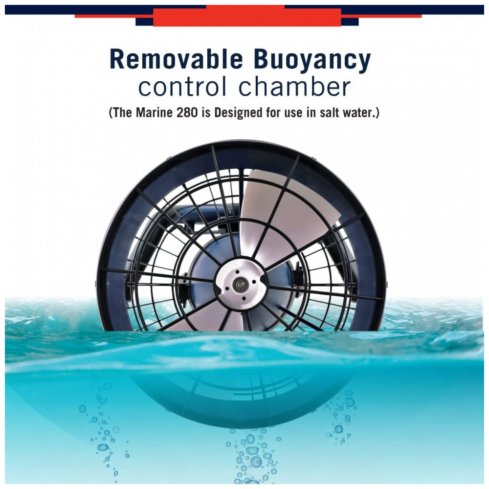 O Marine 280 apresenta alças de borracha resistentes para suportar o ambiente subaquático hostil, garantindo que não escorreguem ou quebrem mesmo nas condições mais desafiadoras. Ele também possui flutuação ajustável, permitindo adicionar ou remover pesos para ajustar a flutuabilidade dos Seascooters, proporcionando maior estabilidade e controle debaixo d água.