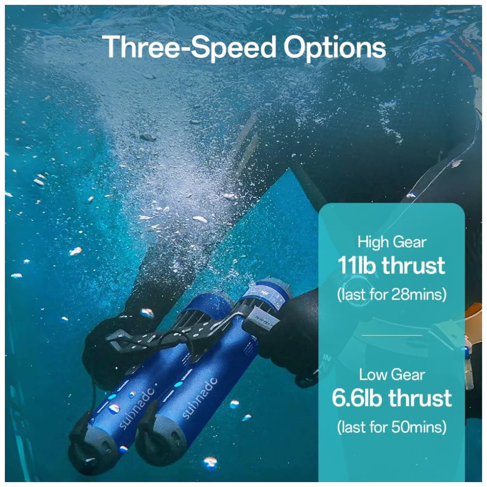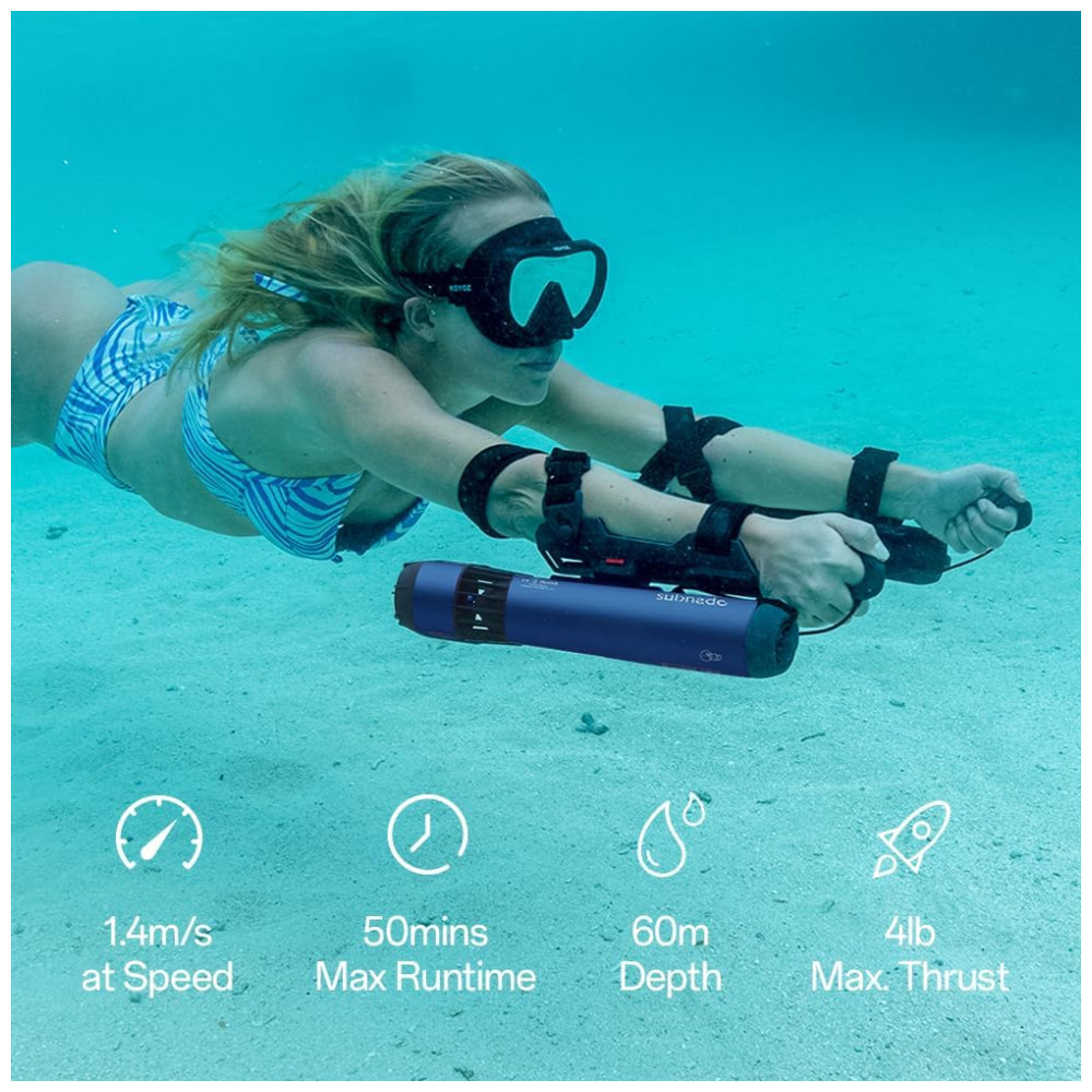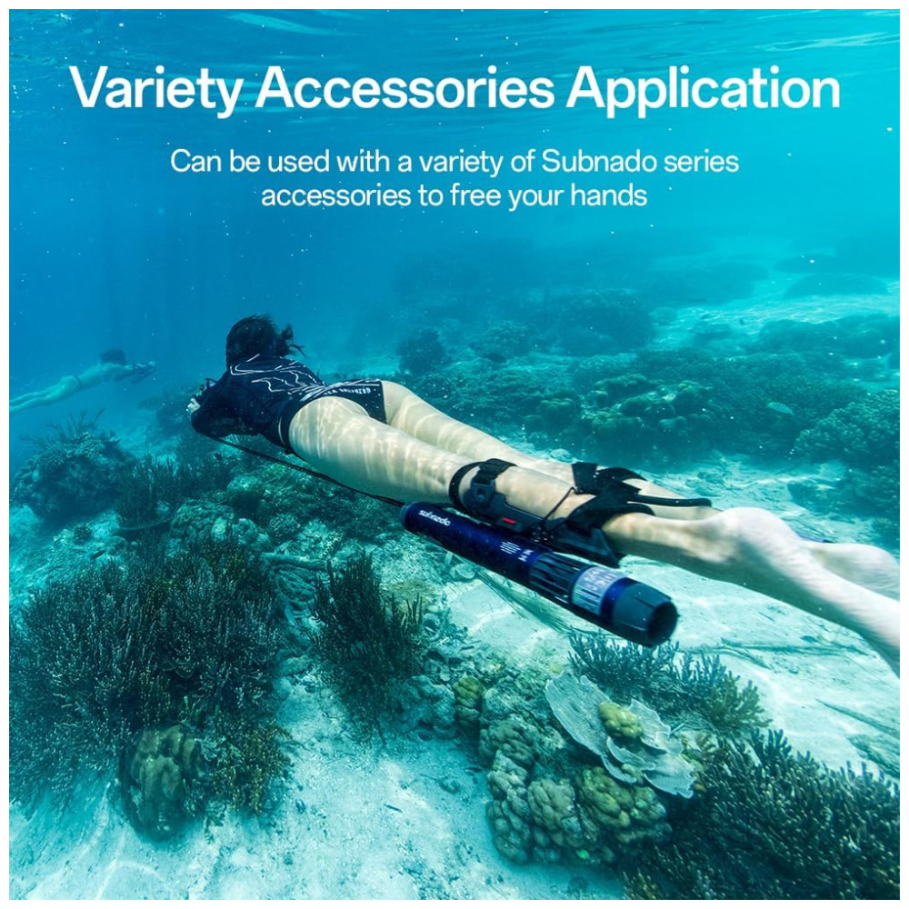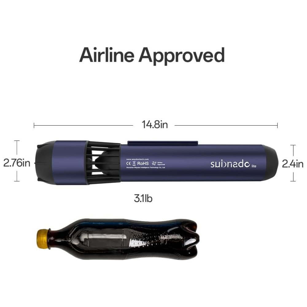 O scooter subaquático Subnado Lite da Waydoo é compacto e portátil, com dimensões de 37 x 15,7 x 13,6 cm e peso de apenas 1,36 kg, equivalente ao tamanho de uma garrafa de refrigerante. Com uma bateria de 98Wh aprovada para voos, este scooter aquático é perfeito para mergulho, snorkeling e outras atividades subaquáticas. Com um sistema de bateria avançado que permite carregar em apenas 1,2 horas, 3 velocidades, modo de cruzeiro de até 50 minutos, e capacidade de carregar dispositivos eletrônicos, o Subnado Lite proporciona até 6,4 kgf de empuxo graças ao seu sistema de propulsão eficiente. Ideal para iniciantes e mergulhadores experientes, este sea scooter foi projetado para facilitar a operação e oferecer mais tempo para explorar as maravilhas submarinas.