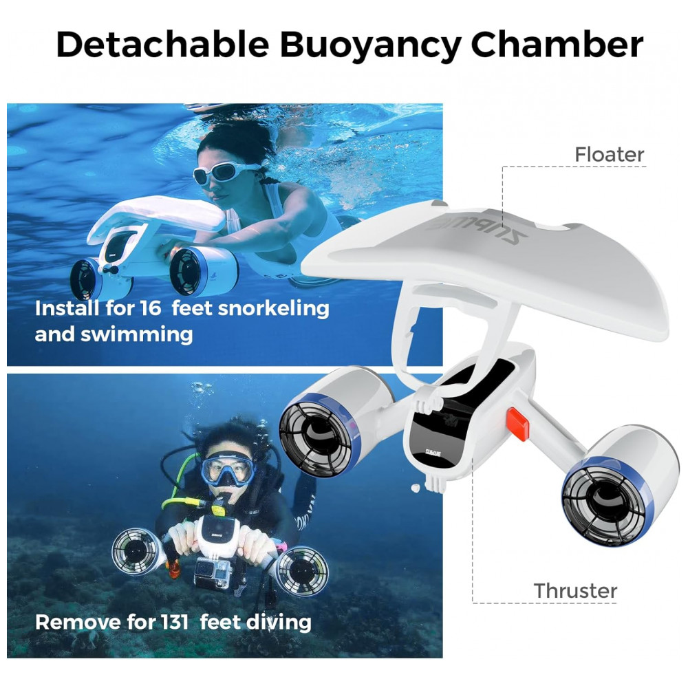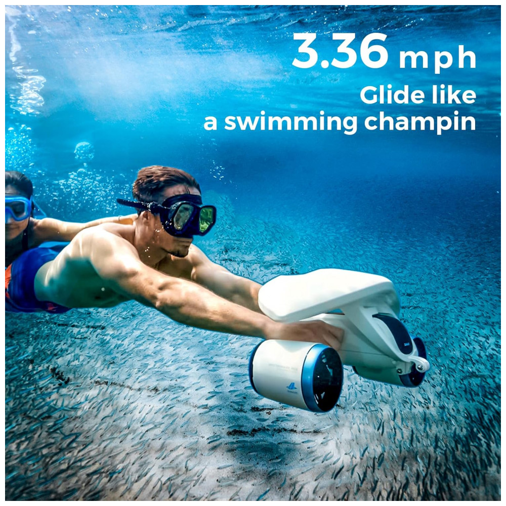 O scooter subaquático Sublue Mix é equipado com motores duplos que fornecem até 22 lbf de empuxo, alcançando velocidade máxima de 5,4 km/h (1,5 m/s) para uma navegação suave e ágil. Possui bateria removível de 11000 mAh à prova d’água, proporcionando até 30 minutos de uso intermitente ou 16 minutos de uso contínuo, com fácil substituição para maior conveniência. Inclui módulo de flutuabilidade removível para ajuste entre flutuabilidade positiva — ideal para snorkeling — e neutra para mergulho, suportando profundidades de até 40 metros. Estrutura leve de apenas 3,5 kg fabricada em materiais de alta resistência, com acabamento em fibra de carbono e proteção das hélices para maior segurança. Compatível com a maioria das câmeras de ação, com suporte para captação de imagens subaquáticas. Fácil operação com botão único para iniciantes e profissionais. Certificação para transporte aéreo da bateria.