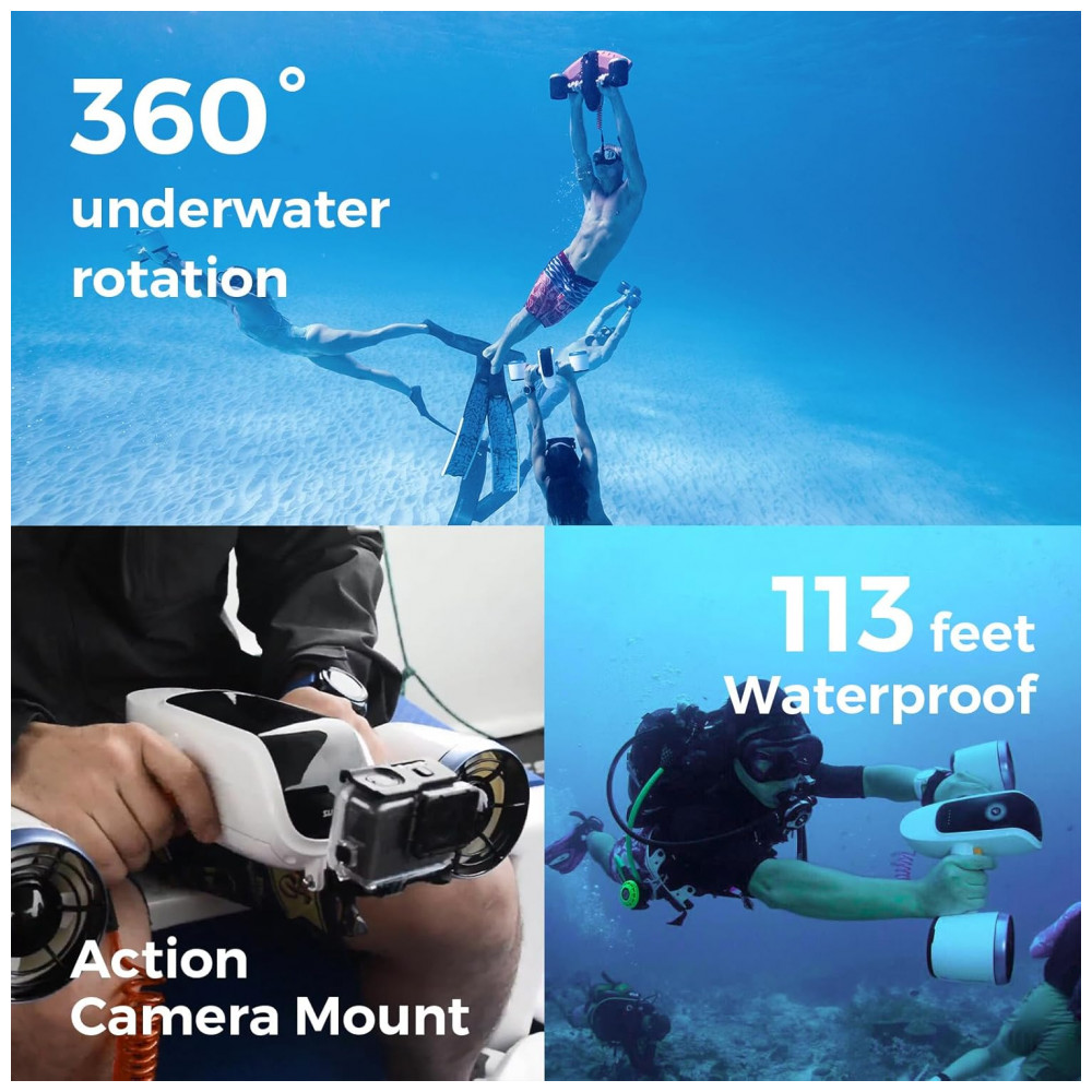 Recursos adicionais: módulo de flutuabilidade removível, proteção de hélices, suporte para câmera de ação