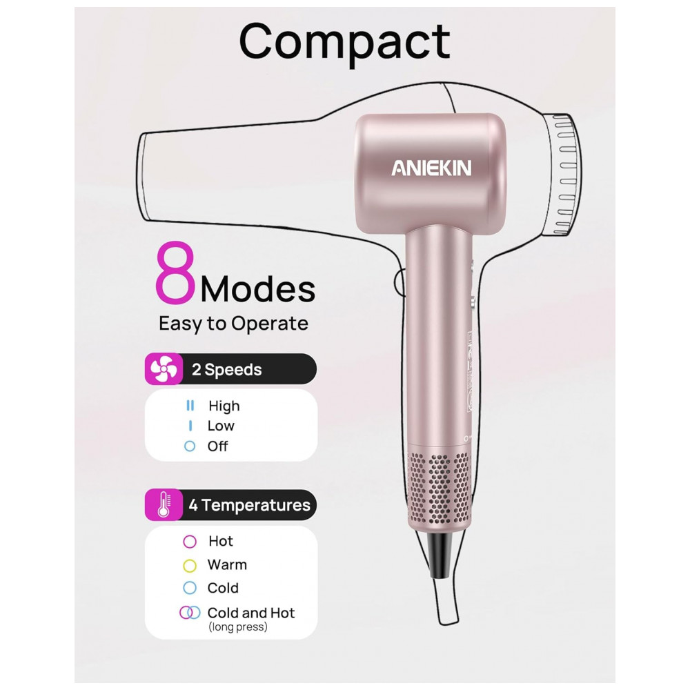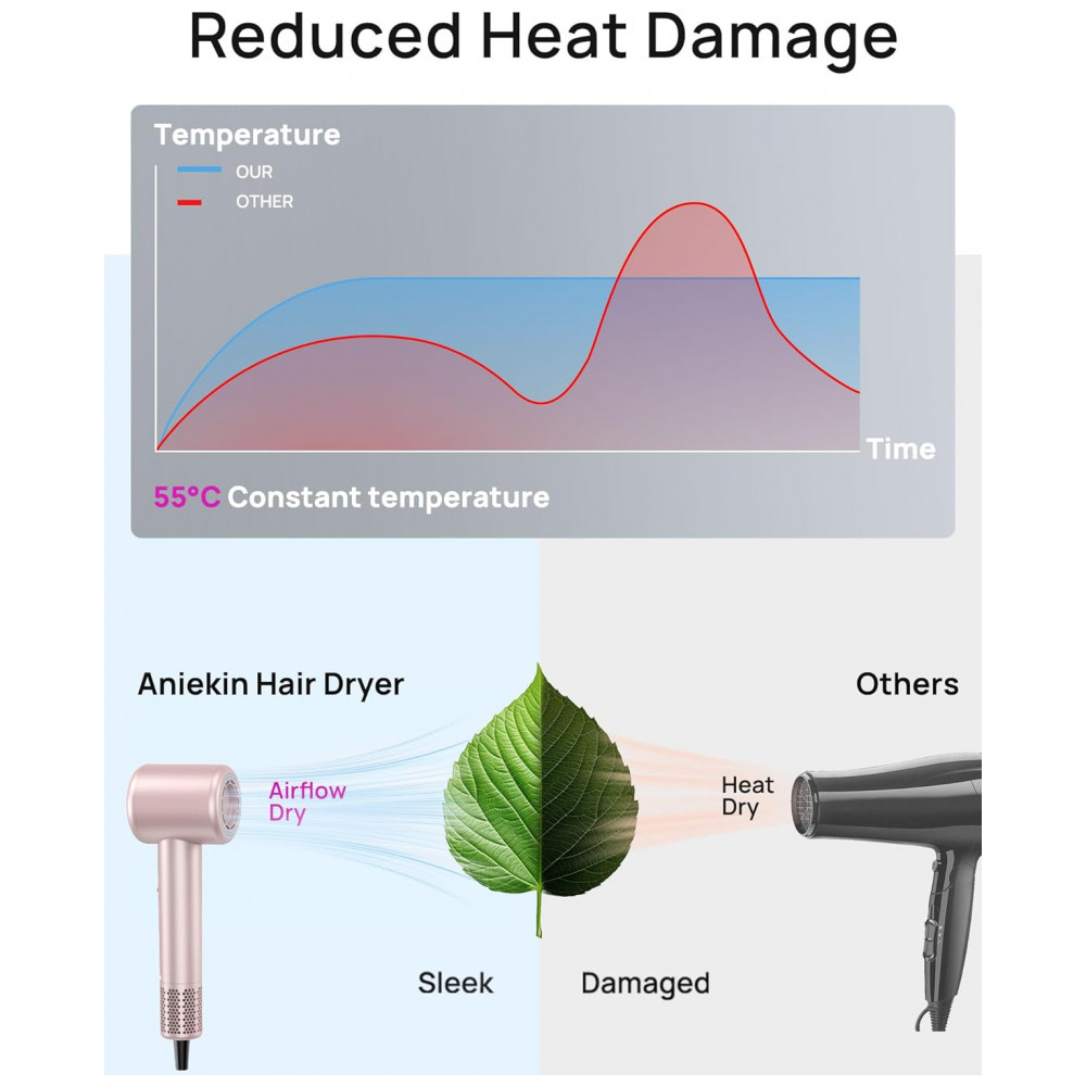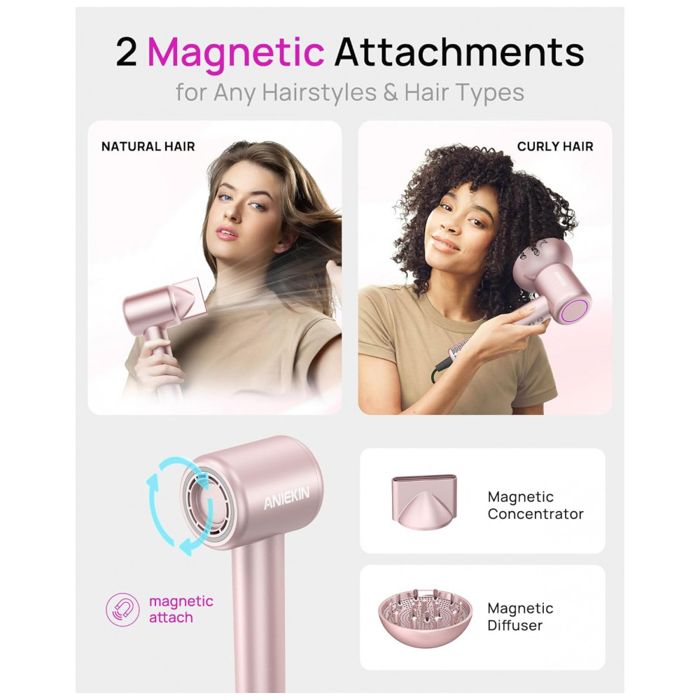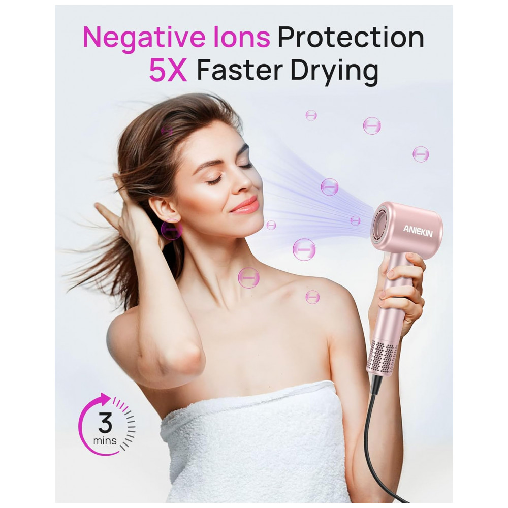 Secador de Cabelo ANIEKIN Secagem Ultra Rápida com Motor sem Escovas para Cabelos Saudáveis e Brilhantes Tecnologia Silenciosa e Controle Térmico pa