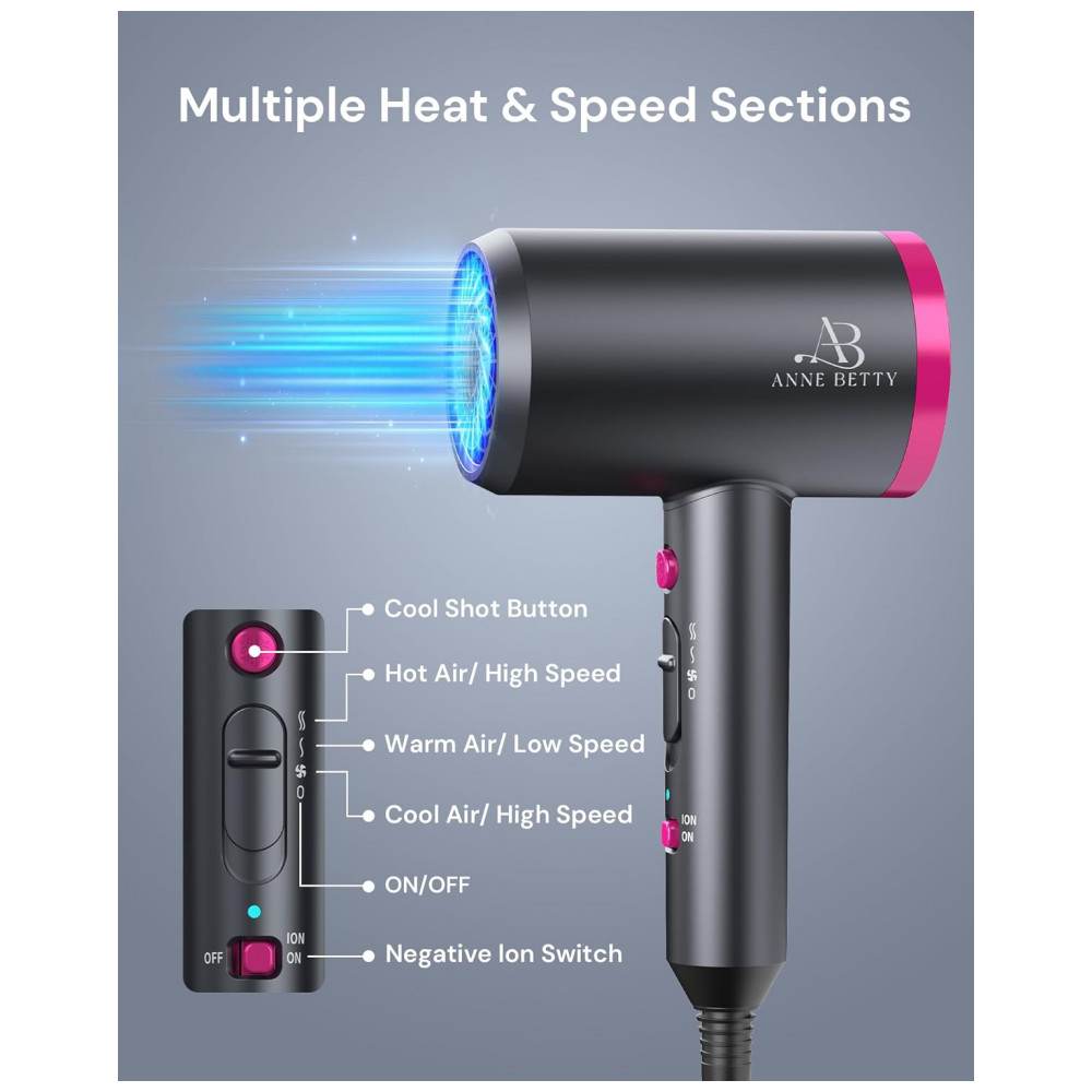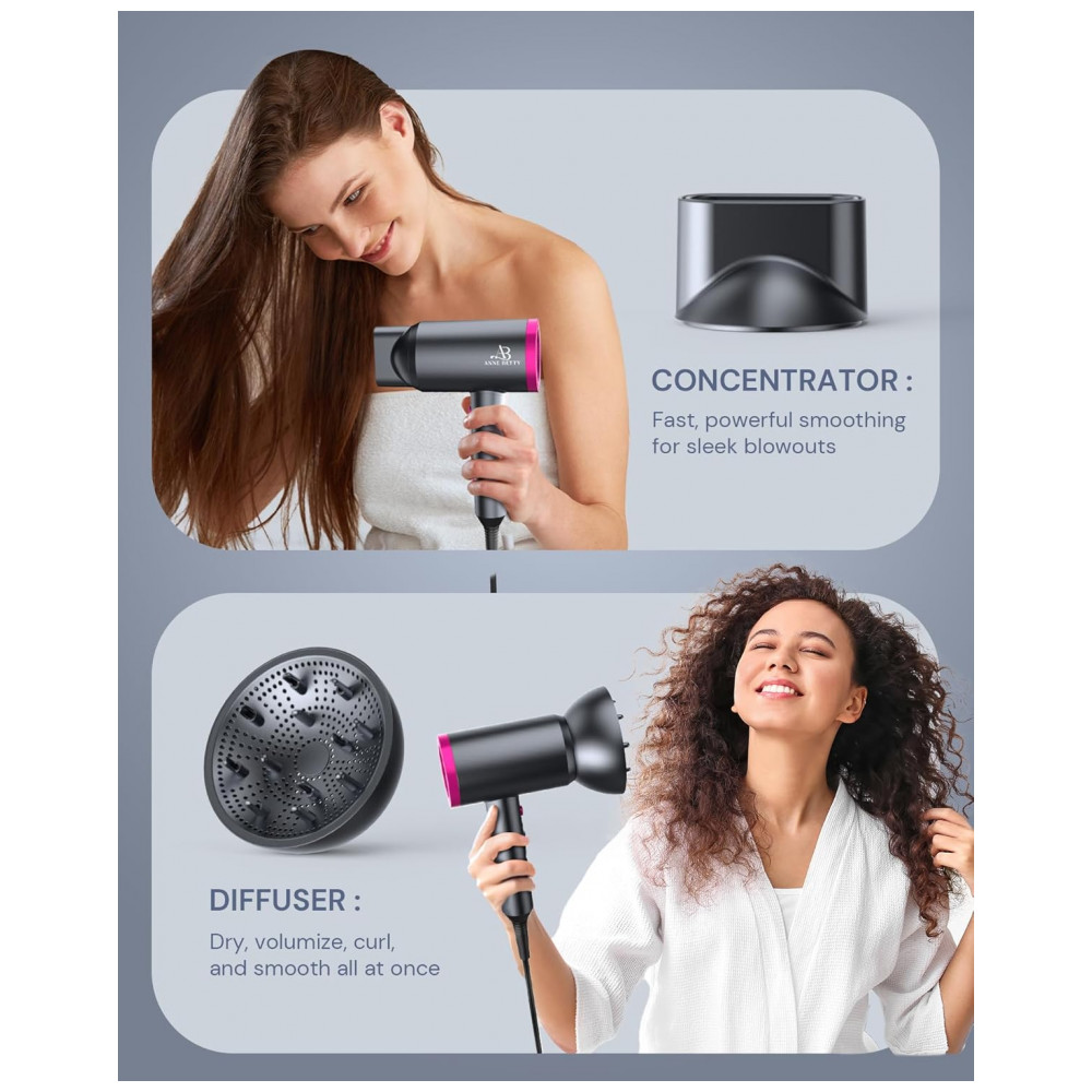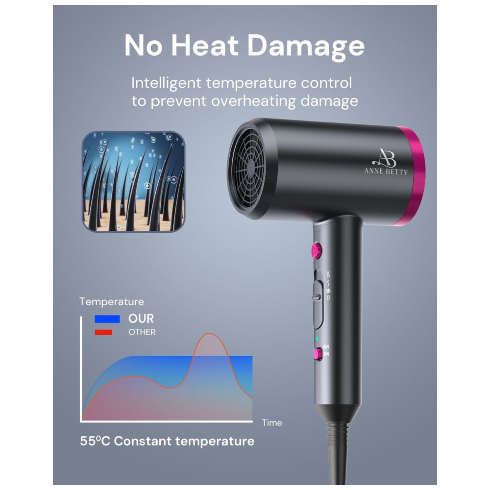 Secador de Cabelo com Difusor para Cabelos Cacheados 1800W Secador Iônico para Mulheres e Homens Secagem Rápida Leve Baixo Ruído Ferramenta de Es