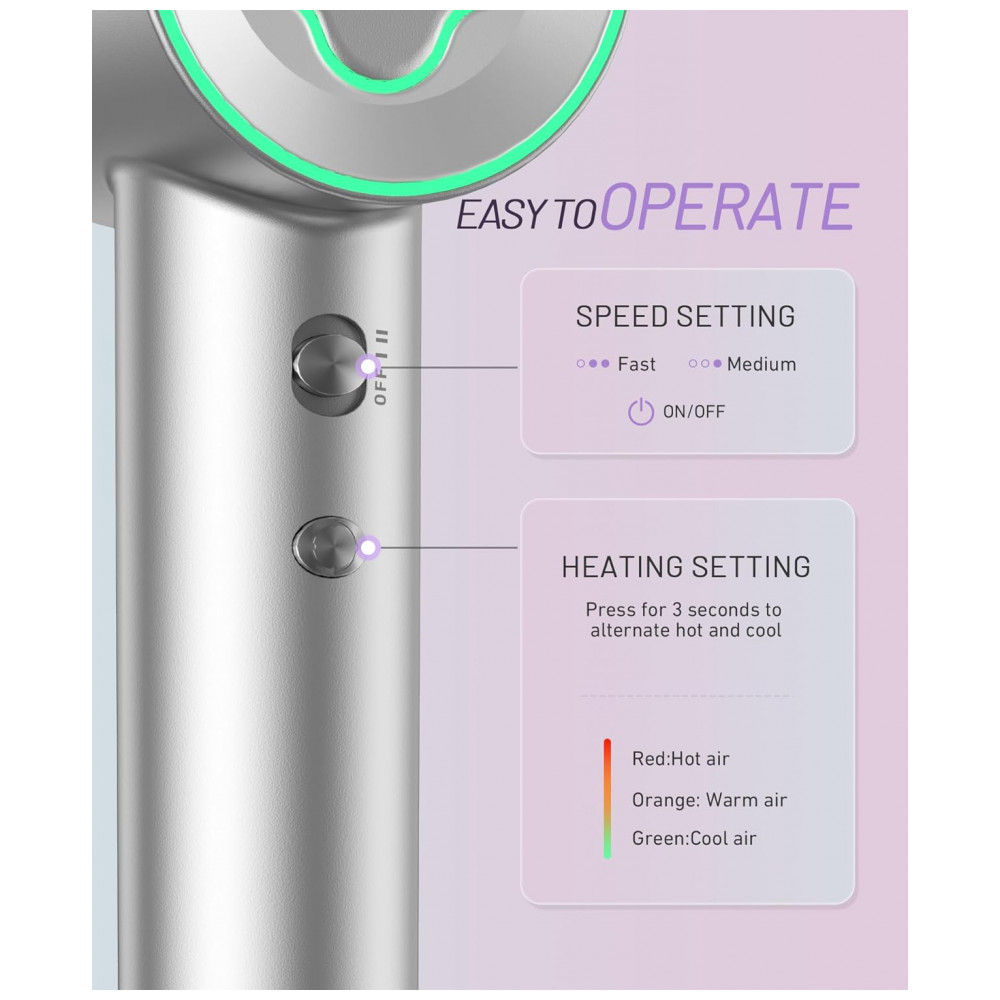 Agora secar o cabelo ficou mais rápido e eficiente com o Secador de Cabelo da Cosy Companions. Equipado com um potente motor brushless de 150.000RPM, proporciona um fluxo de ar potente a 36ms de velocidade para secar o cabelo em menos tempo que os secadores tradicionais. Com a tecnologia Íon Negativo, libera 500 milhões de íons negativos para acabar com o frizz, garantir a hidratação, deixar os fios macios, volumosos e com brilho natural. Além disso, possui baixo ruído de apenas 51db, controle inteligente de temperatura, com 3 opções de cores para indicar o nível de calor e é leve e portátil, ideal para uso em casa ou viagens. Inclui difusor e bico direcionador. Aproveite o prazer de secar seus cabelos com qualidade e conforto.