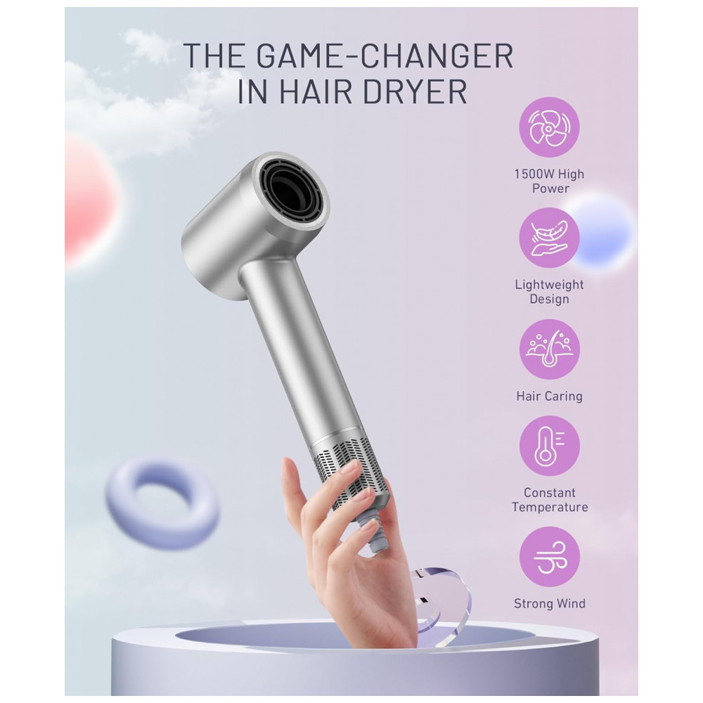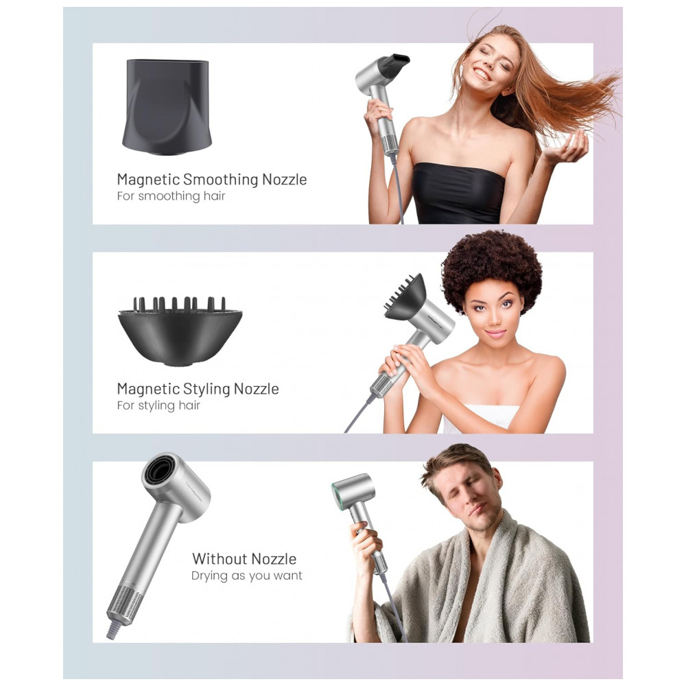 Secador de Cabelo com Motor Brushless de 150.000 RPM Tecnologia Íon Negativo para Secagem Rápida Baixo Ruído Controle Térmico Difusor e Bico Direc