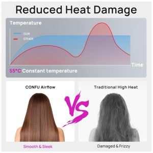 Desfrute de uma secagem rápida e eficiente com o secador de cabelo CONFU, equipado com um motor de alta velocidade de 110000 RPM que proporciona um fluxo de ar potente com velocidade de 26ms para secar o cabelo rapidamente, economizando tempo sem danos por calor. Personalize a temperatura com 4 configurações de calor e 3 velocidades facilmente, garantindo uma experiência de secagem personalizada. Com controle inteligente de calor para evitar danos, a tecnologia iônica avançada reduz o frizz, deixando o cabelo sedoso e brilhante. Leve, portátil e silencioso, este secador é perfeito para uso diário. Além disso, possui um modo de autolimpeza para manter o desempenho impecável.