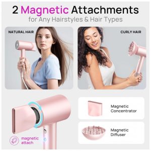 Secador de Cabelo CONFU 110000 RPM para Secagem Rápida com Difusor Magnético e Concentrador Secador de Cabelo Iônico Profissional Leve para Mulheres