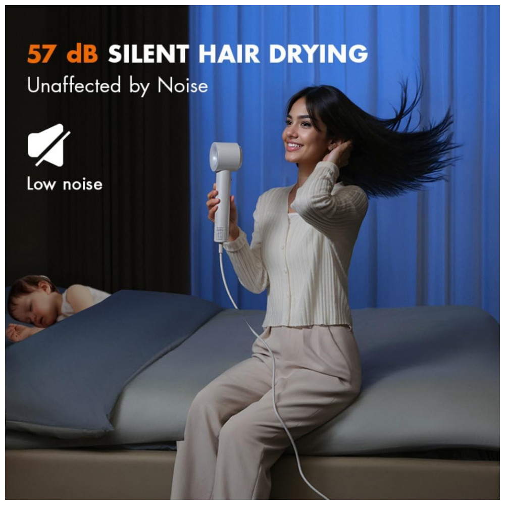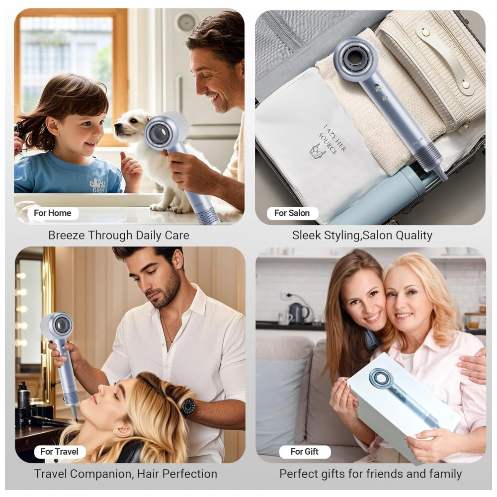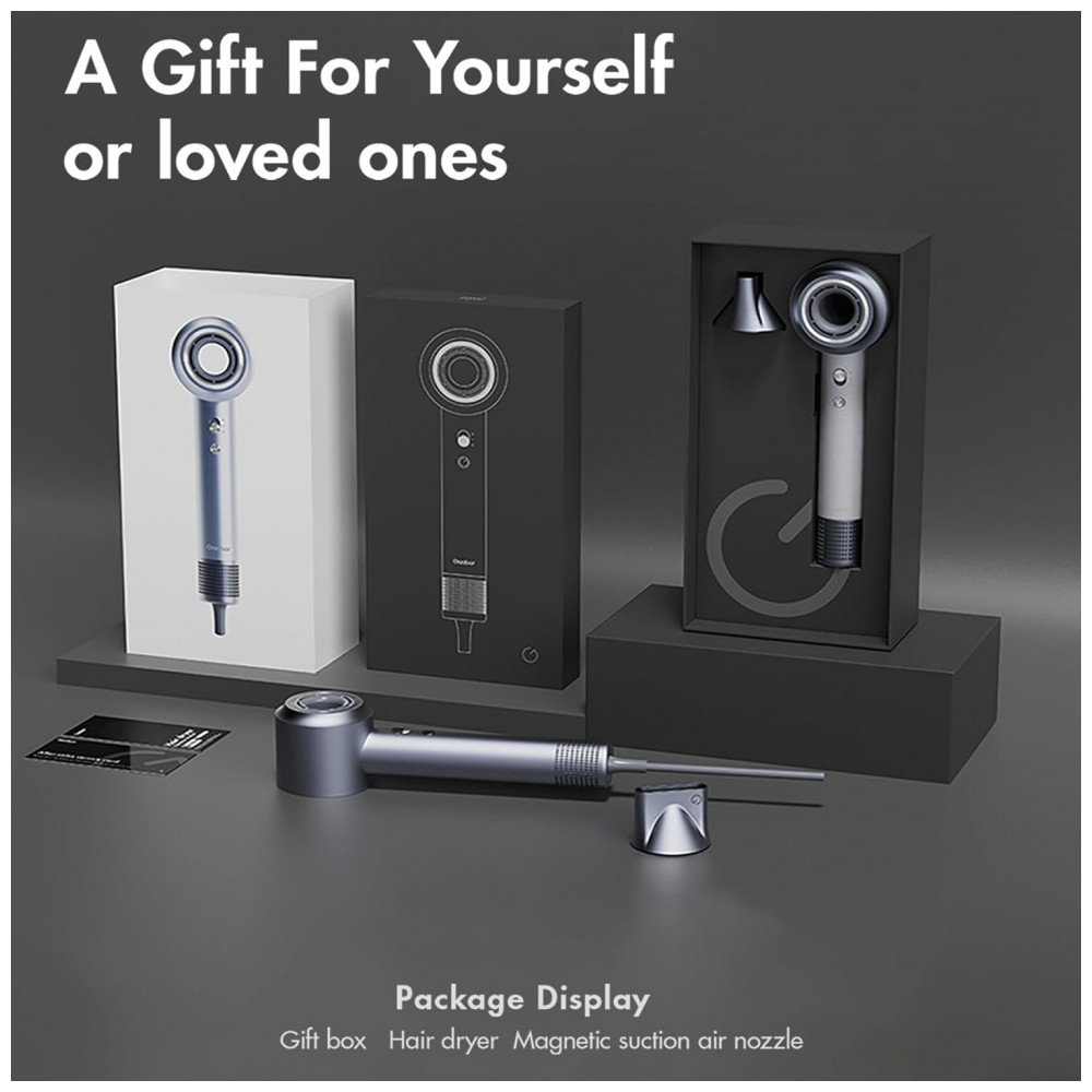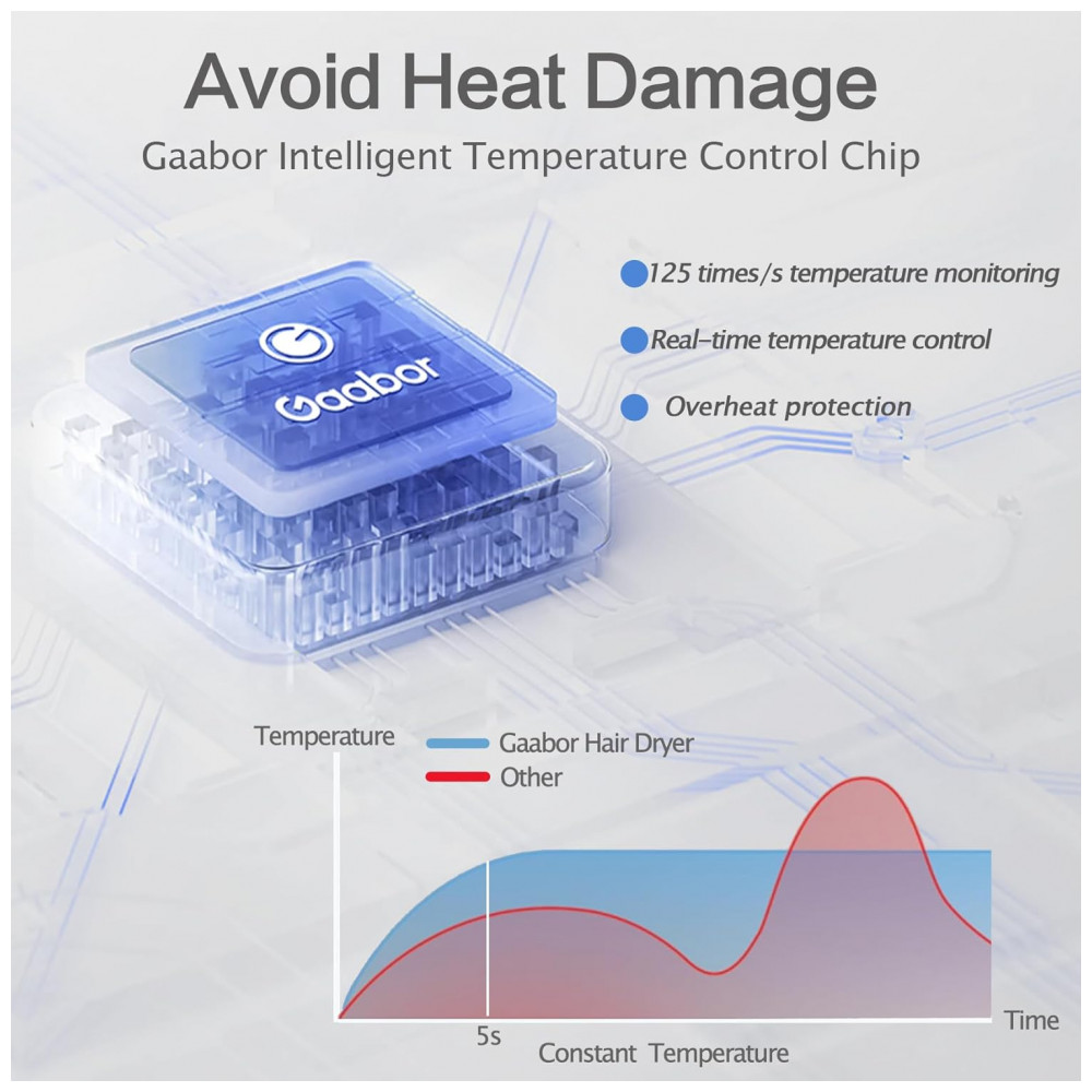 O secador de cabelo profissional Gaabor possui um motor brushless de alta velocidade de 130000 RPM, proporcionando ventos fortes de até 64 m/s, 5 vezes mais rápido do que secadores tradicionais. Com fluxo de ar amplificado em 5 vezes, gera uma corrente de ar concentrada de alta pressão e velocidade, secando rapidamente a água sem danificar os fios. Controle de temperatura inteligente para todos os tipos de cabelo, com 4 configurações de temperatura, 2 opções de velocidade e 8 modos de secagem. Design ergonômico leve e operação ultra silenciosa, pesando apenas 520g, evitando fadiga nas mãos, com nível de ruído de 57dB. Tecnologia iônica para proteção dos fios, neutralizando cargas positivas, equilibrando a eletricidade estática, mantendo a umidade, nutrindo, deixando os cabelos mais saudáveis, suaves e brilhantes. Acompanha bocal magnético para estilização precisa, design elegante e industrial. Ideal para presente.