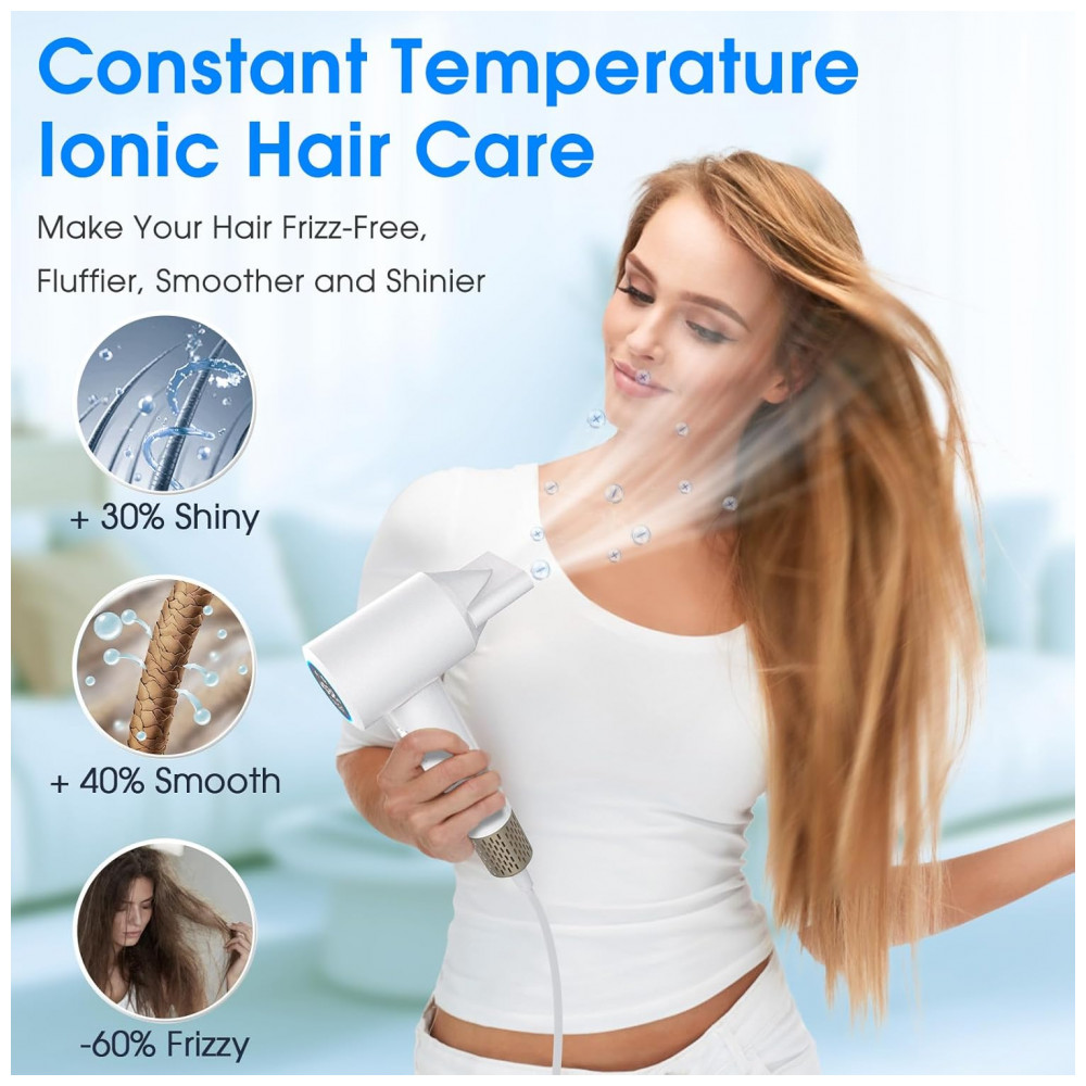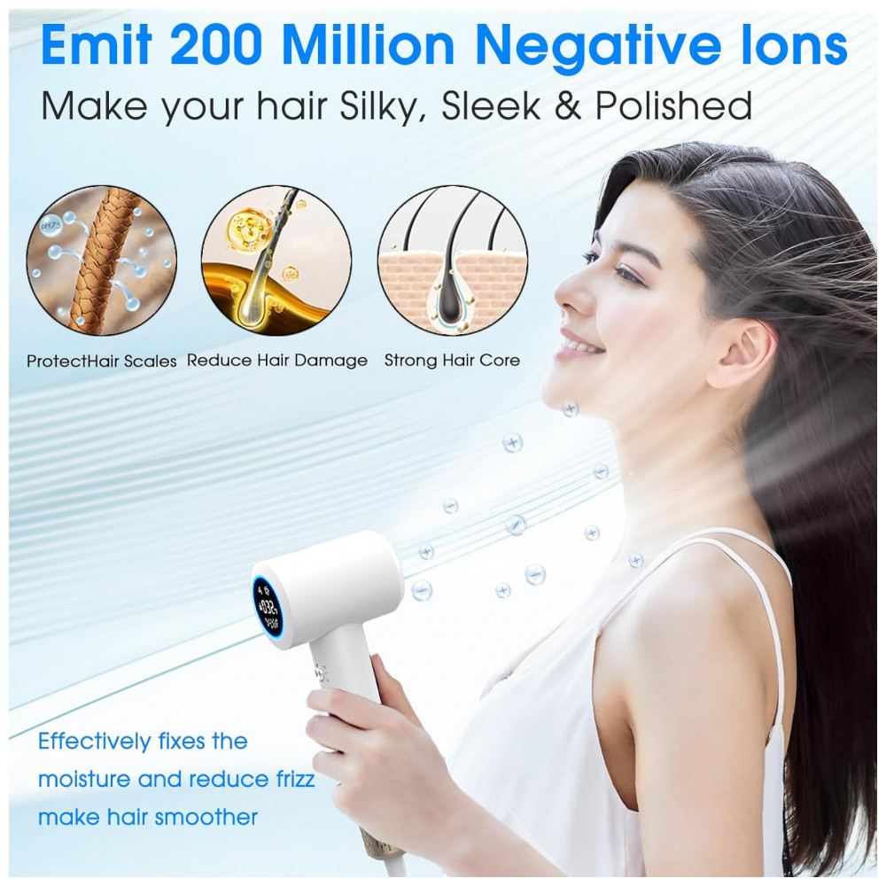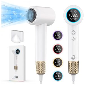 Secador de Cabelo KARFUN Plasma 1500W com Tecnologia Iônica Positiva e Negativa LED Display 110V 5 Temperaturas e 2 Velocidades – Branco