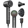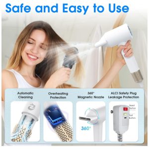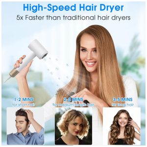O secador de cabelo KARFUN Plasma possui motor brushless de alta velocidade, com 150,000 RPM e potência de 1500W, oferecendo secagem rápida com vento de até 22 m/s, reduzindo o tempo de secagem em até 5 vezes comparado a secadores convencionais. Conta com tecnologia iônica dupla que libera 200 milhões de íons positivos e negativos para controlar o frizz, eletricidade estática e suavizar os cabelos durante o uso.