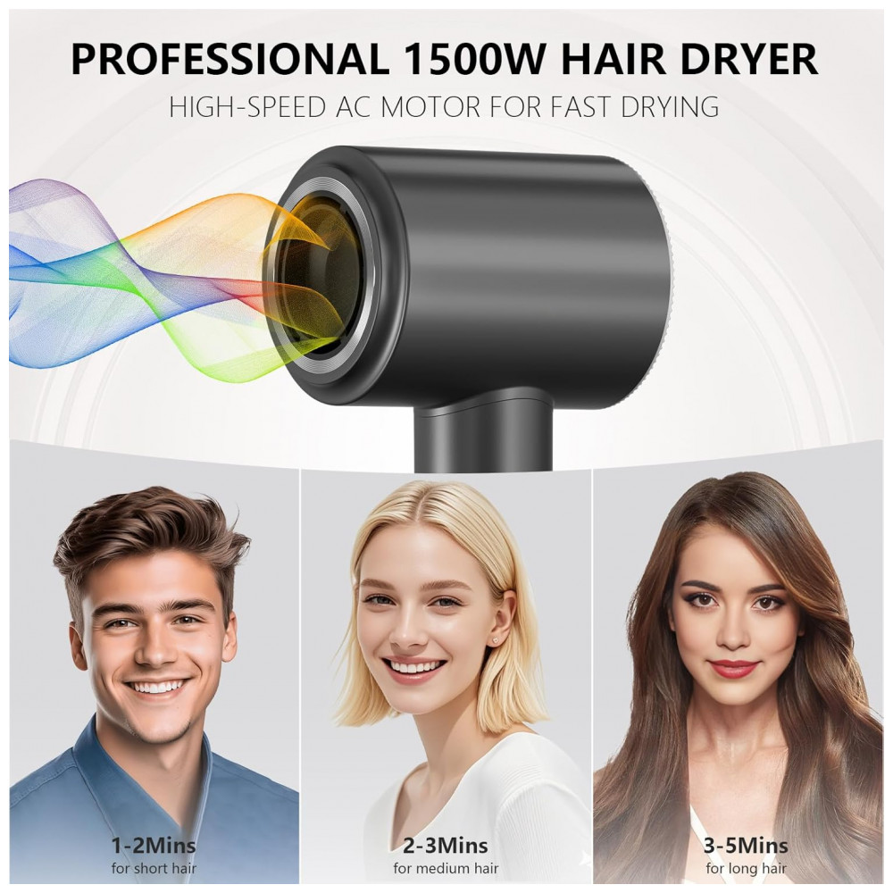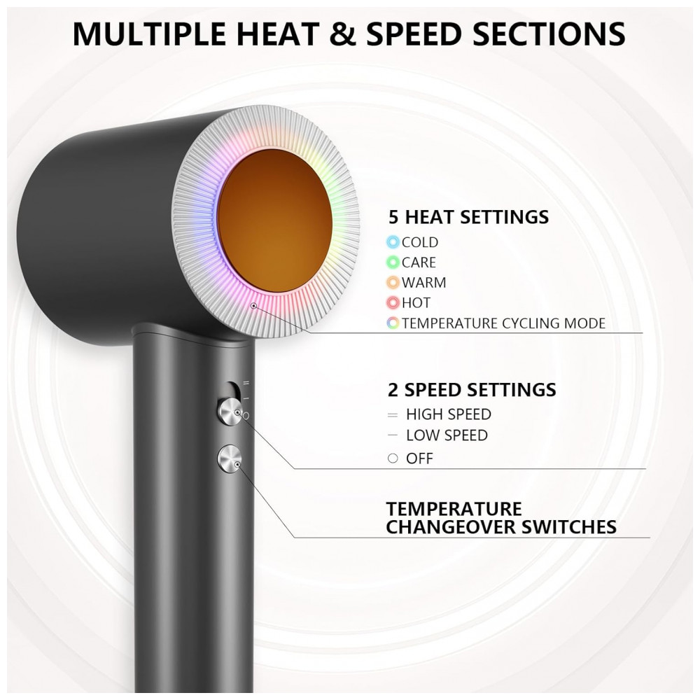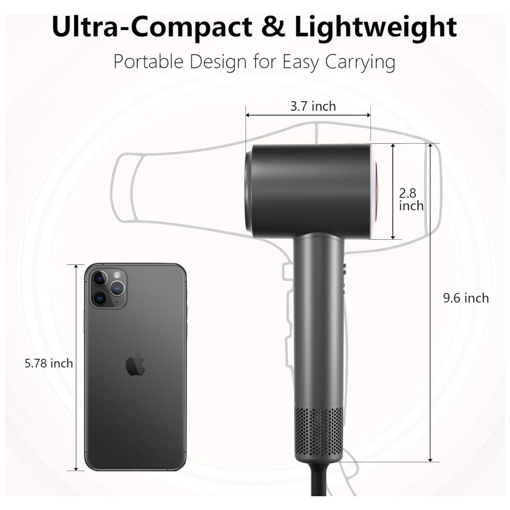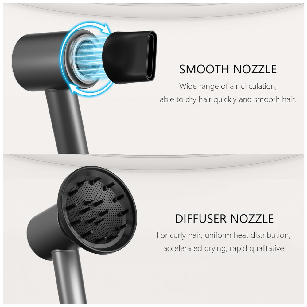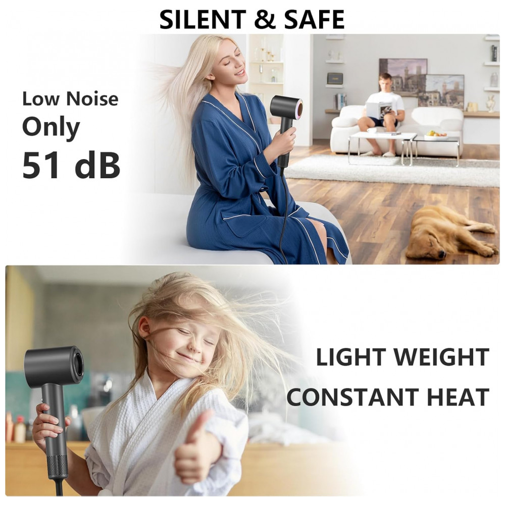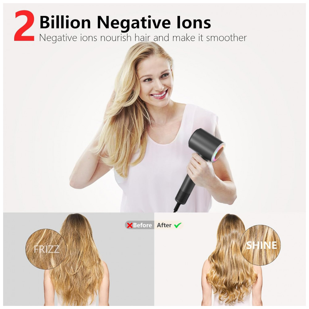 Secador de Cabelo Secador de Alta Velocidade Profissional de 160.000 RPM com 2 Bilhões de Íons Negativos – Preto e Cinza