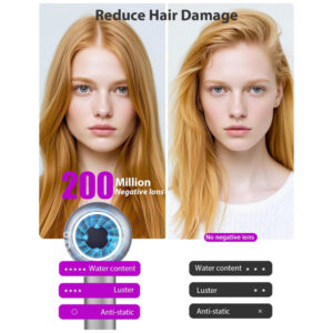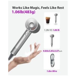 Inovação Revolucionária, Redefinindo os Cuidados com os Cabelos. Conheça o Secador de Cabelo da NUTROMO. Equipado com motor sem escovas HPD, ele entrega incríveis 160.000 RPM, secando seu cabelo 5 vezes mais rápido que os secadores tradicionais. Com tecnologia de íons negativos de alta concentração, o Secador de Cabelo controla o frizz, retém a umidade e deixa seu cabelo sedoso. Seu sistema inteligente de controle de temperatura garante distribuição de calor uniforme, protegendo seu cabelo de danos causados pelo calor. Com a NUTROMO, todo dia é um bom dia para o cabelo. Secagem Super Rápida – Nosso secador de cabelo de alta velocidade possui uma velocidade máxima do vento de 36ms, removendo a umidade do seu cabelo de maneira eficiente, secando-o 5 vezes mais rápido e 80% mais eficiente que os secadores tradicionais. Cabelo curto? Pronto em apenas 1 minuto. Cabelo médio a longo? Seco em 2 minutos. Cabelo longo? Perfeitamente seco em 4 minutos. Seja para sair correndo de manhã ou relaxar após um longo dia, este secador transforma sua rotina de cuidados com o cabelo em uma experiência rápida e agradável. Cuidado Iônico Avançado para Cabelos Ultrassuaves – Com o poder de 200 milhões de íons negativos para nutrir profundamente seu cabelo, reparando e protegendo a cutícula para um visual mais saudável e brilhante. Diga adeus ao frizz e aos nós. Além disso, nosso secador de cabelo profissional adota uma tecnologia inovadora que atrai moléculas de umidade do ar, formando uma camada protetora em seu cabelo para reter a hidratação e melhorar a suavidade, tornando seu cabelo mais sedoso e fácil de gerenciar – dias de cabelo incrível sem esforço todos os dias. Controle de Temperatura Inteligente para Todos os Tipos de Cabelo – O secador de cabelo NUTROMO para mulheres e homens é equipado com 3 modos de temperatura, 3 velocidades de vento e ar frio de um toque, tornando-o perfeito para todos os tipos de cabelo, seja cacheado, grosso ou fino. Mas não é só isso. O secador de cabelo é equipado com um sensor de controle de temperatura inteligente NTC, que monitora e ajusta a temperatura 110 vezes por segundo, mantendo um nível de calor consistente para proteger o cabelo de danos. Estilizar nunca foi tão inteligente, seguro ou fácil. Novo Bocal Magnético Atualizado – Diga adeus aos bocais que caem durante a estilização! O bocal do nosso secador de cabelo de secagem rápida possui uma força magnética de 25N, 50% mais forte do que a força magnética dos secadores de cabelo comuns. Esse magnetismo poderoso garante que seu acessório de estilização se fixe rapidamente e com segurança ao secador de cabelo. Seu design amigável facilita a instalação, remoção e troca entre os modos de estilização, tornando a estilização sem esforço. Proteção Segura – O secador de cabelo difusor da NUTROMO é rigorosamente testado pela FCC e UL para sua segurança. Sua tecnologia avançada de detecção de temperatura detecta instantaneamente o superaquecimento e desliga automaticamente para evitar danos, garantindo um desempenho duradouro. Para maior tranquilidade, possui uma tomada de segurança ALCI certificada pela UL – suporta apenas voltagem de 110-120V, atendendo aos padrões de segurança dos EUA. Com essas medidas excepcionais de segurança, este secador de cabelo não é apenas confiável – foi feito para durar.