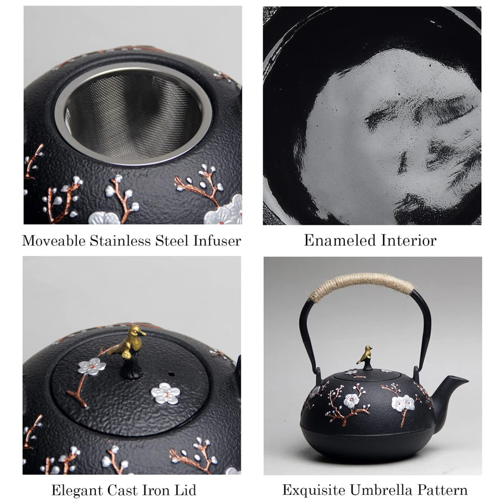 O bule de ferro fundido pesado pode melhorar a qualidade da água, realçar o sabor do chá e reter melhor o calor.