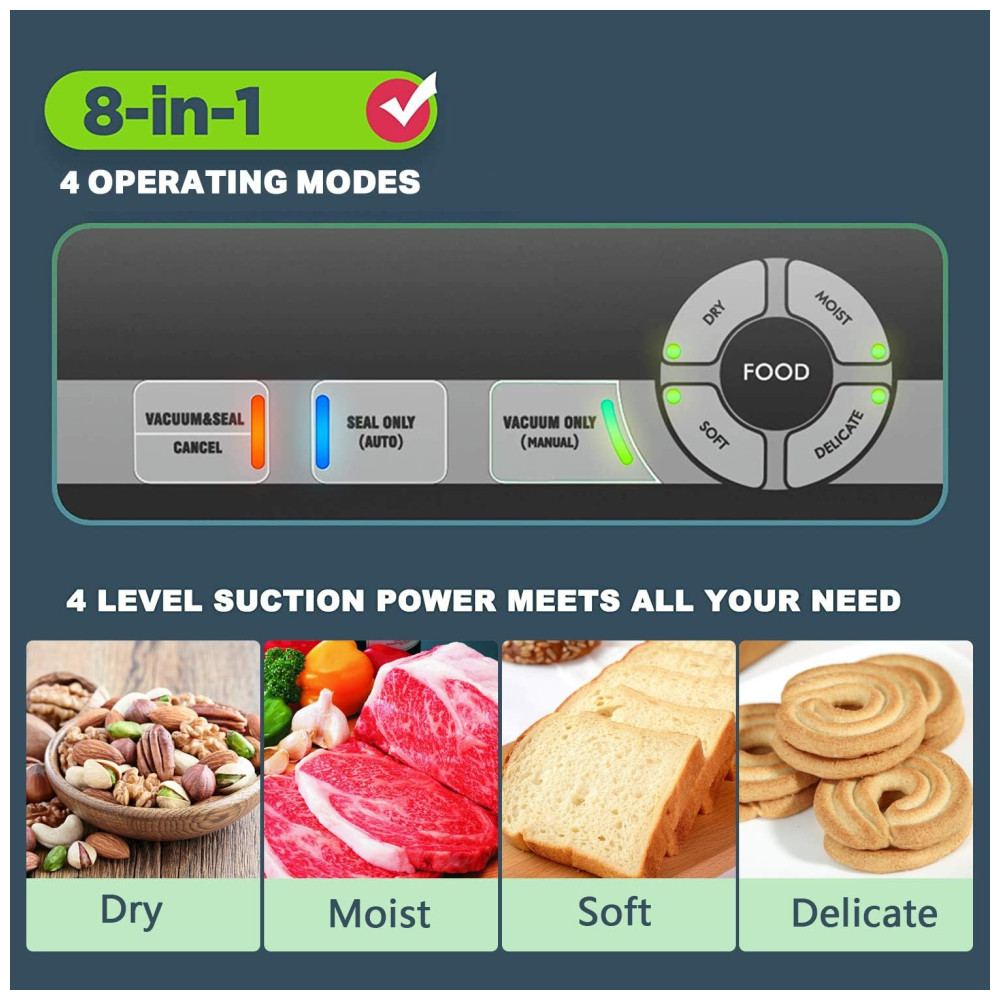 MANTENHA OS ALIMENTOS FRESCOS As seladoras a vácuo POTANE VS2690 usam fios de aquecimento de e motor sem escova. Enquanto outras barginbrands usam fios de aquecimento de e motor barato. 8 em 1 pré ajustes fáceis e sistema de controle inteligente 4 modos de operação e quatro modos de vedação a vácuo. Pode sentir e aspirar com precisão de acordo com o tipo de alimentos. DESIGN SUPERIOR INCLINADO O design superior inclinado evita que o suco seja extraído durante a aspiração de alimentos como carne. Também garante que os sacos de selagem a vácuo sejam totalmente utilizados. ETL UL TESTADO E CERTIFICADO O selador a vácuo POTANE é ETL e UL certificado pelo Nationally Recognized Test Laboratories NRTLs para conformidade com os padrões de segurança de produto aplicáveis, SEGURANÇA É NOSSA PRIORIDADE NÚMERO 1