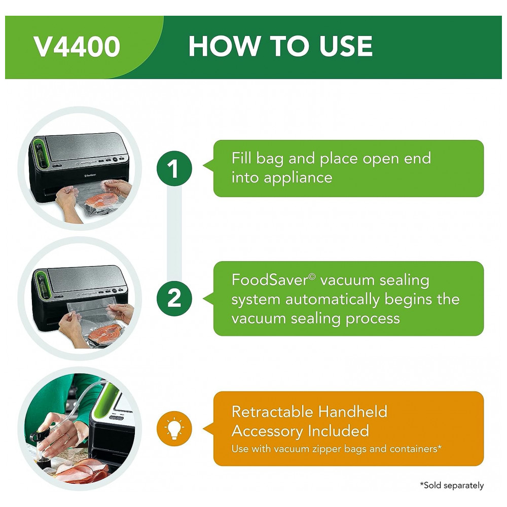 Seladora a Vácuo Automática para Alimentos Secos e Úmidos com Controle Digital e Detecção Automática 110V FoodSaver V4400 Prata