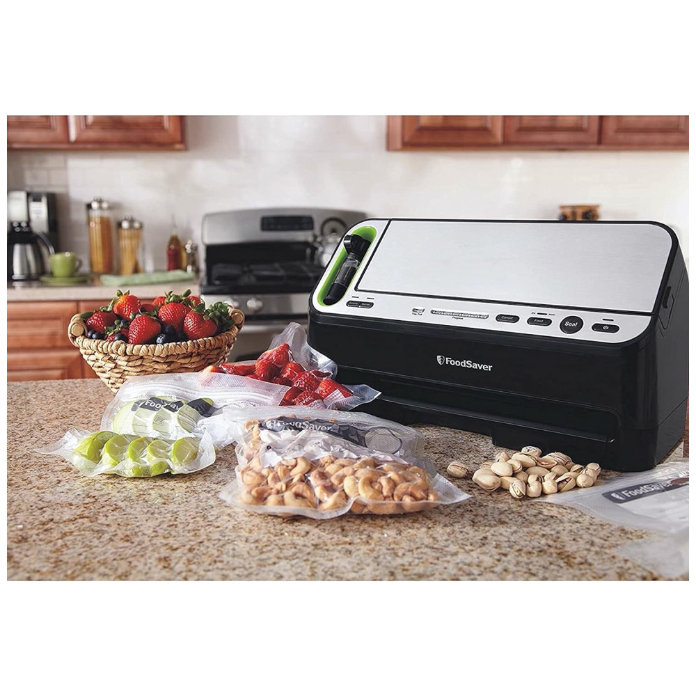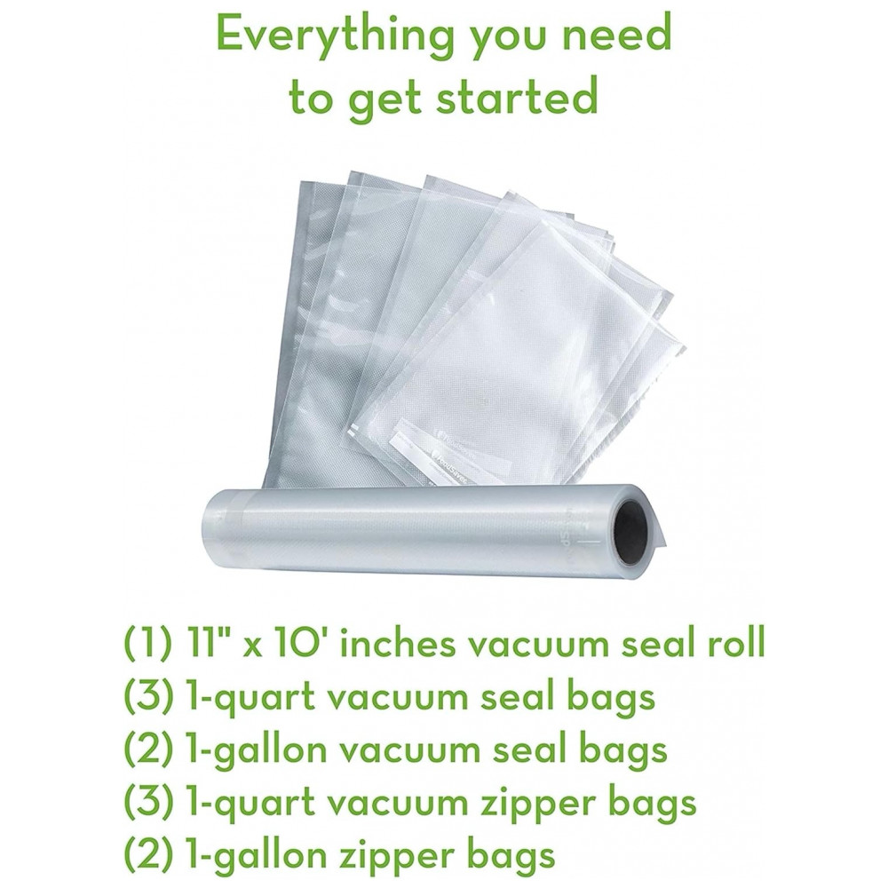 Selar o frescor em A carne preservada com o sistema FoodSaver no freezer pode durar até 3 anos e ainda ter um sabor fresco, saboroso e não queimar no freezer Prepare refeições com antecedência, sobras e produtos zenados na geladeira permanecerão frescos até semanas depois, em vez de estragar em dias. Inclui 1 rolo de vedação a vácuo de 11 x 10 3 sacos de vedação a vácuo de 1 litro 2 Sacos de vedação a vácuo de 1 galão 3 Sacos de zíper a vácuo de 1 litro 2 Sacos de zíper de 1 galão.