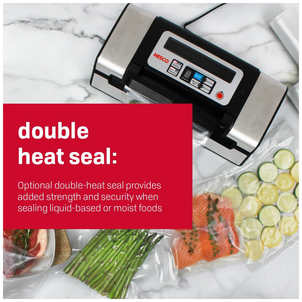 VEDAÇÃO DE CALOR DUPLO A vedação de calor duplo opcional oferece maior resistência e segurança ao vedar alimentos líquidos ou úmidos.