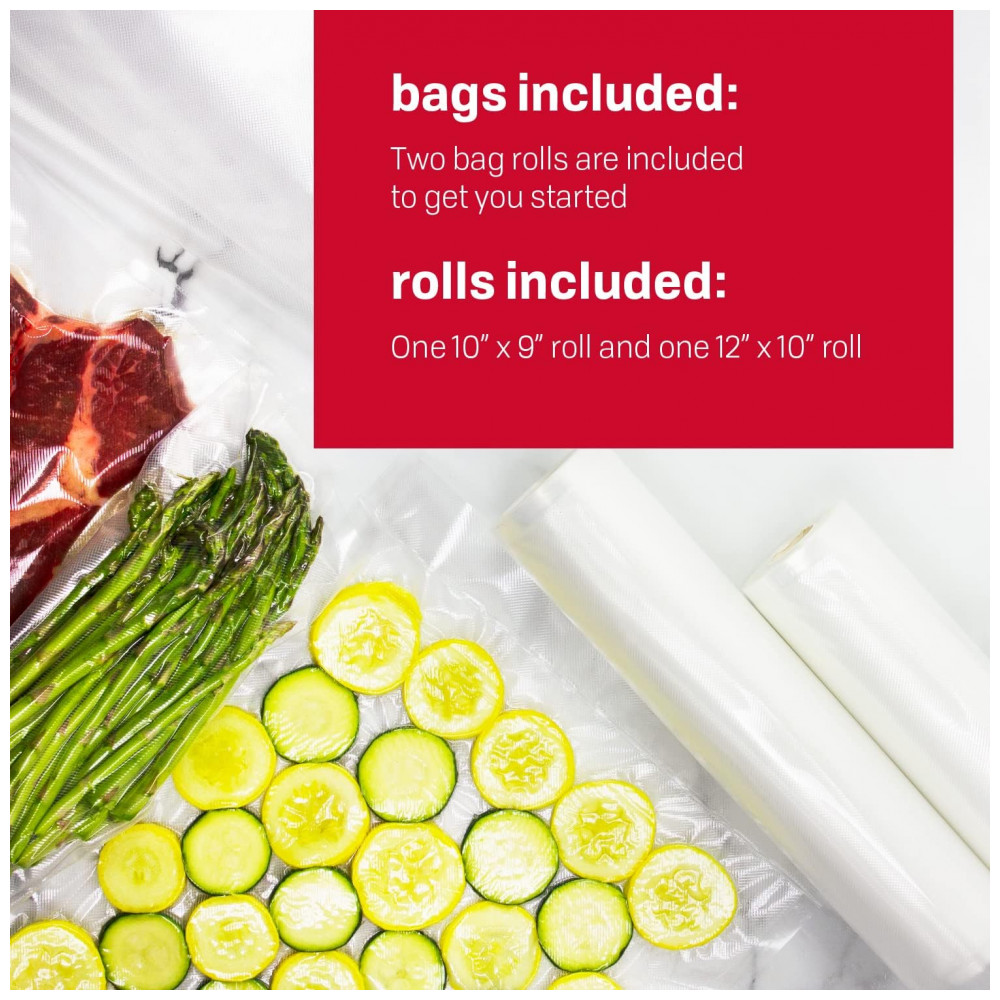 ZENAMENTO E CORTADOR DE SACOS INTEGRADOS zena convenientemente qualquer marca de sacos seladores a vácuo na unidade, enquanto o cortador de sacos ajuda a criar tamanhos de sacos personalizados para suas necessidades