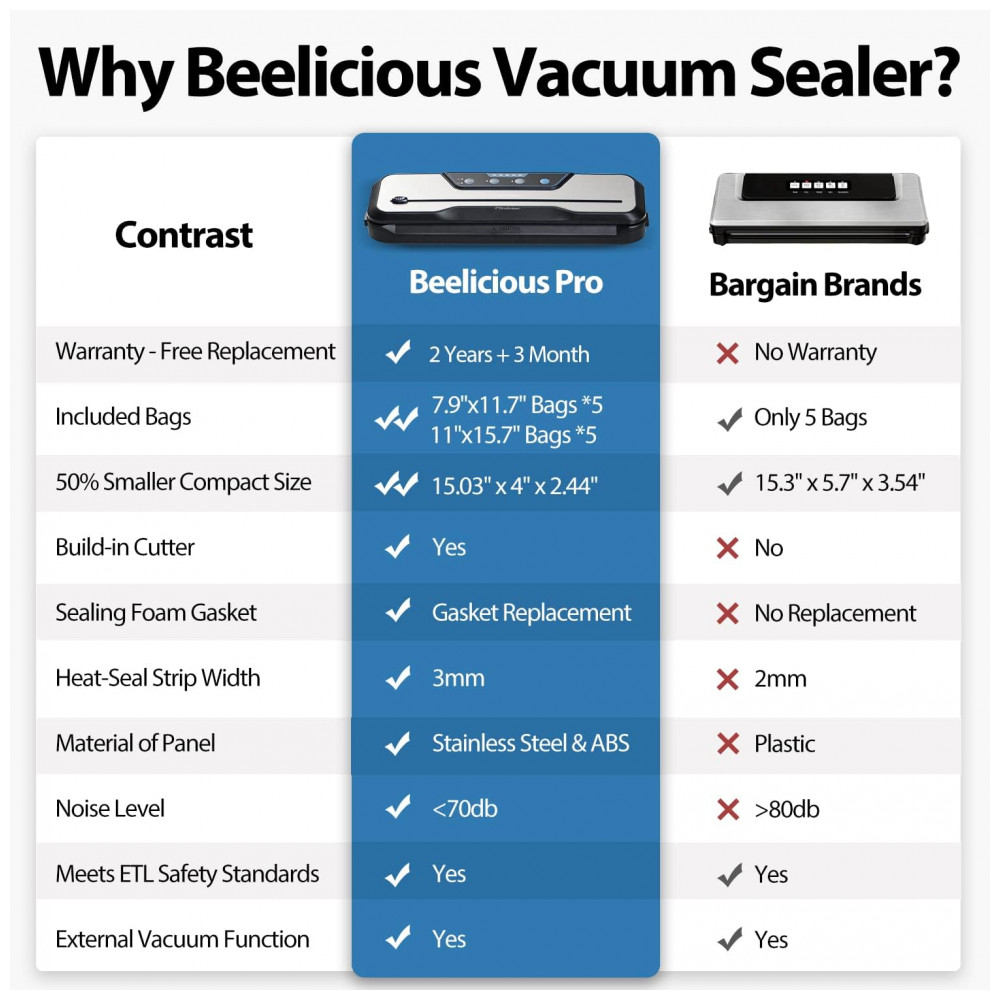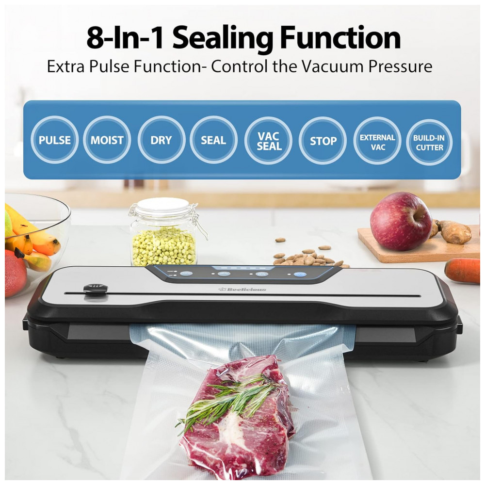 Economia de frescor de alimentos 8 vezes mais longa A poderosa bomba de vácuo aprimorada da Beelicious fornece sucção forte e estável, juntamente com tecnologia de vedação avançada, mantendo sua comida fresca por até 8 vezes mais e economizando seu dinheiro e espaço na geladeira.
