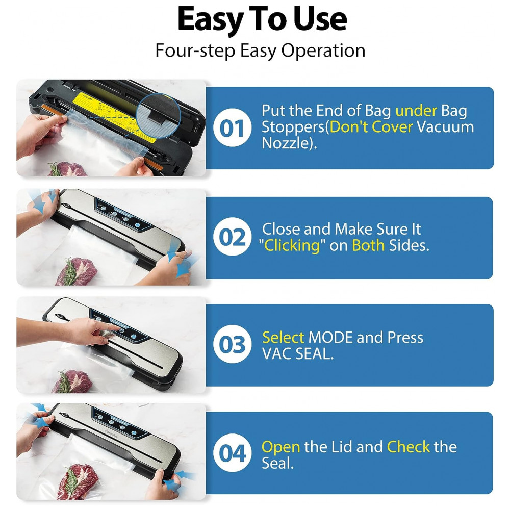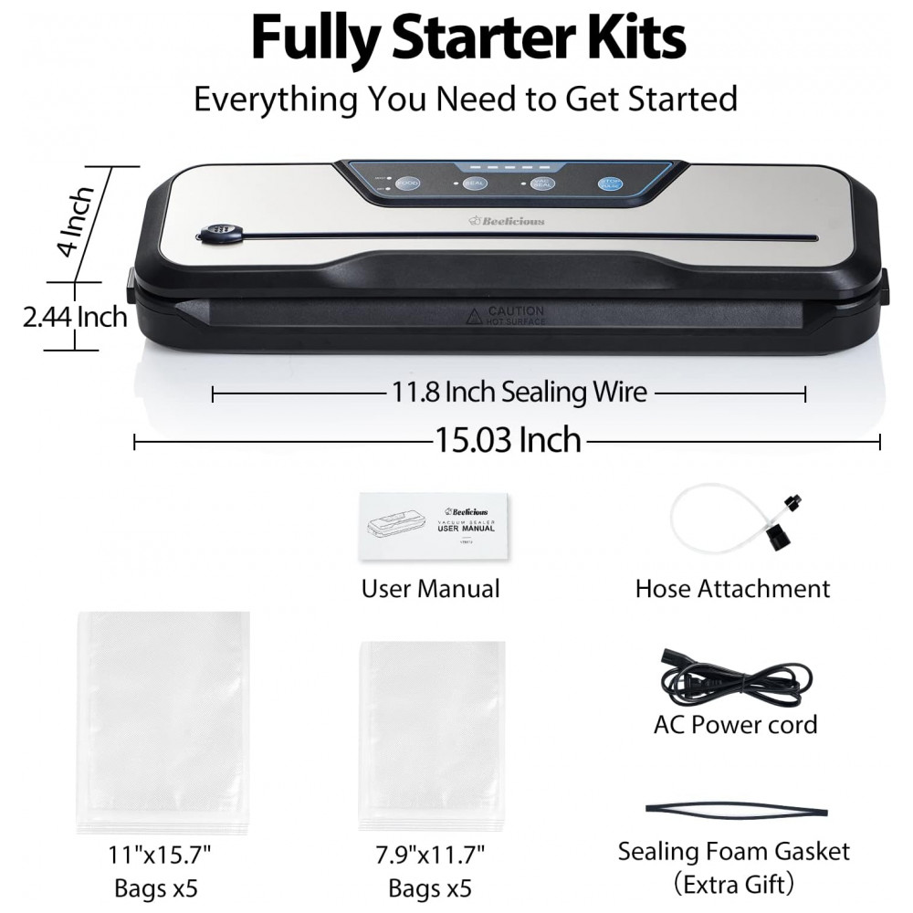 Design compacto e fácil de limpar38, x 10, x 6,2 centimetros, 50 design compacto economiza espaço na bancada comprimento máximo de vedação permite que você sele vários sacos em um tempo de vedação Aço inoxidável e material ABS, mais fácil de limpar.