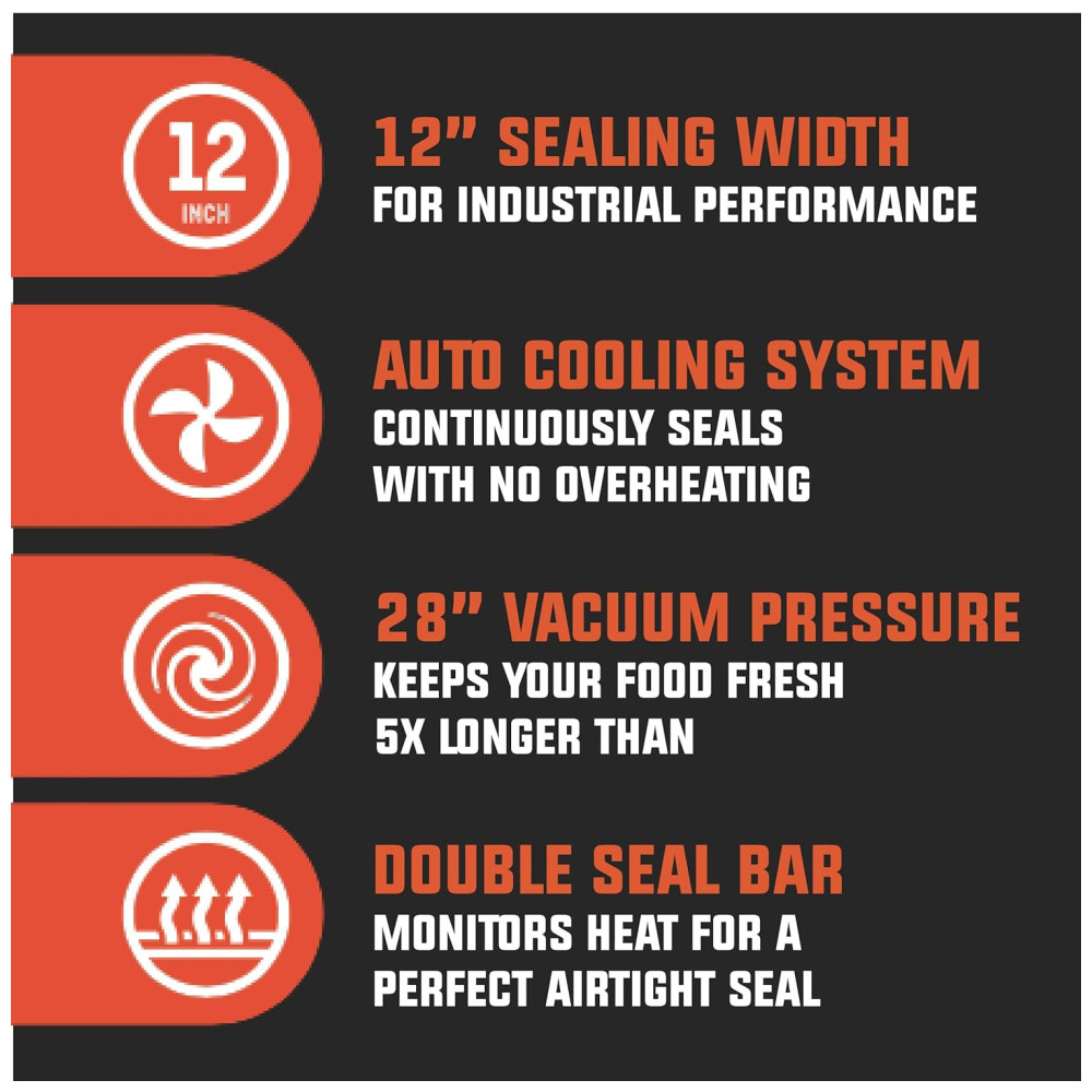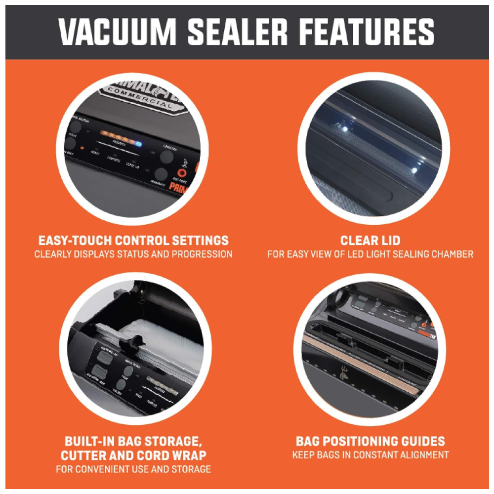 ECONOMIZA TEMPO E DINHEIRO Torne a preparação de refeições mais rápida, fácil e acessível com a máquina a vácuo PrimalTek de 30 centimetros. Mantenha o ar fora de seus sacos de vedação a vácuo para aumentar o frescor dos alimentos, evitar queimaduras no freezer e reduzir a deterioração.