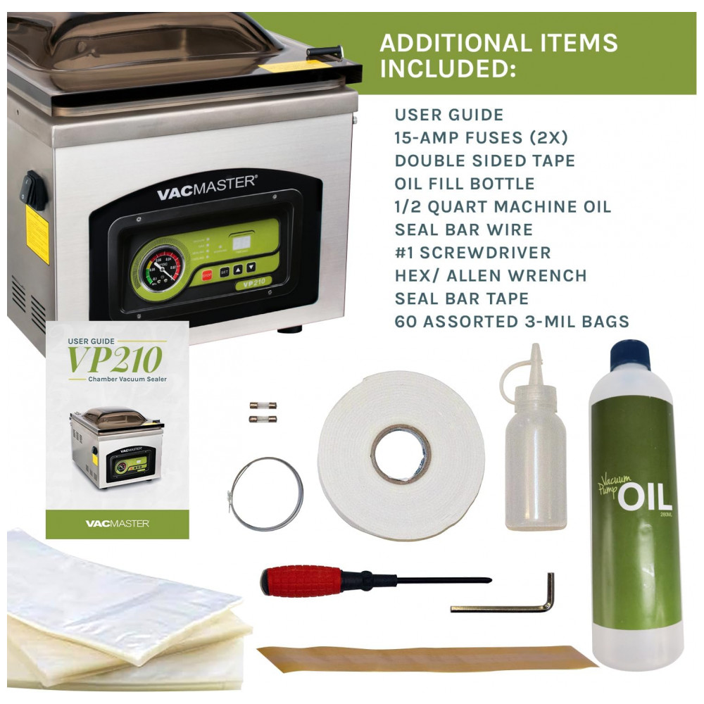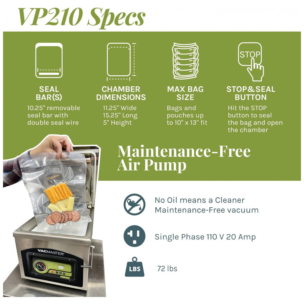 Seladora a Vácuo Automática Profissional para Alimentos Secos e Úmidos em Aço Inoxidável 110V 210W VacMaster VP210 Prata