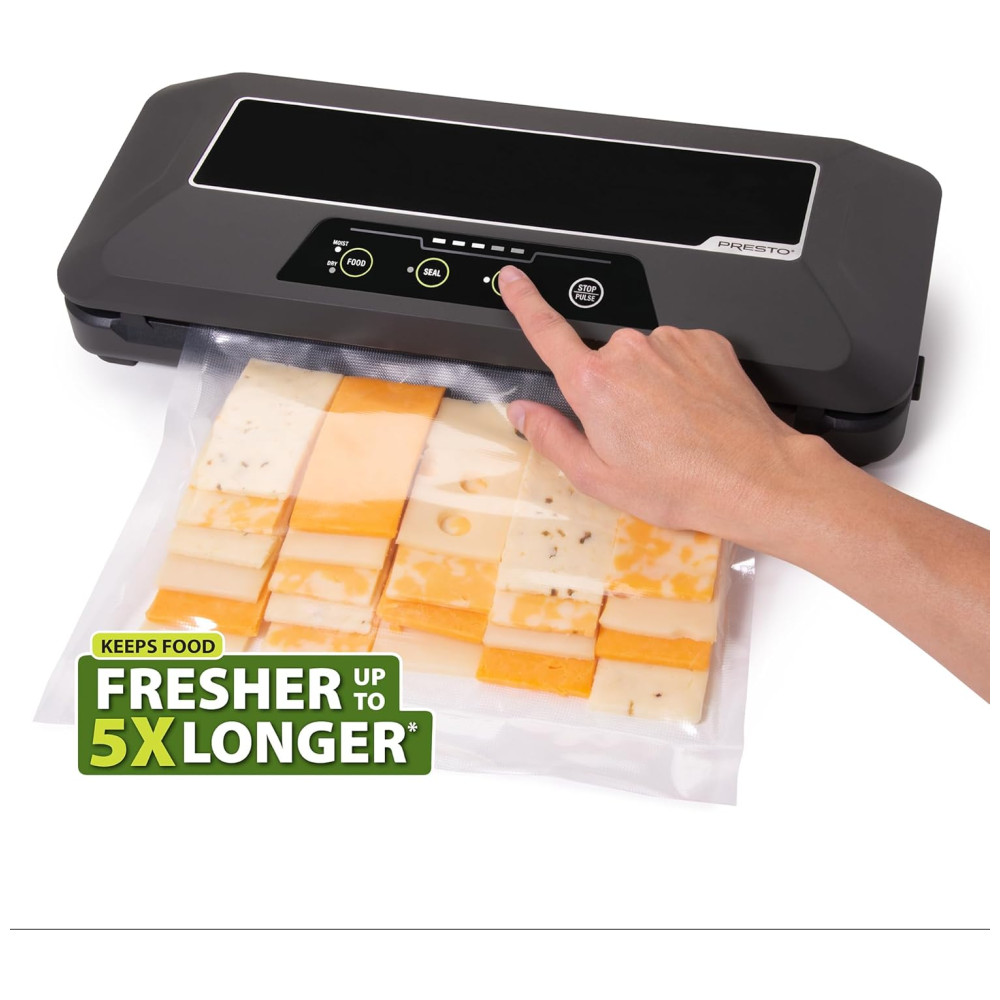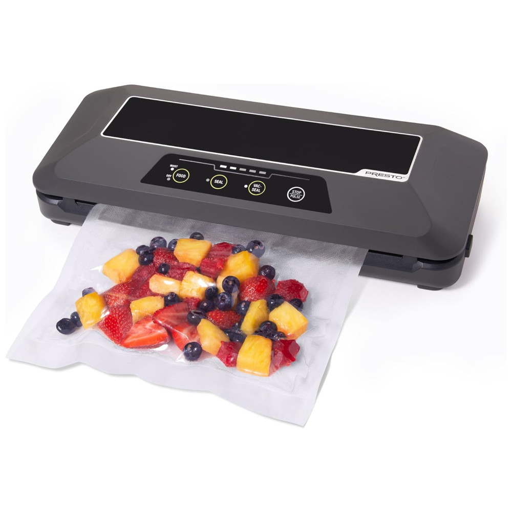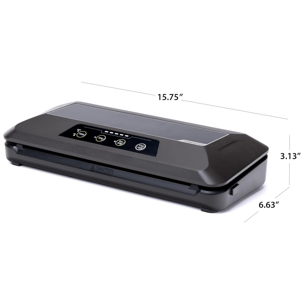 Seladora a Vácuo Elétrica Automática com Configurações Para Alimentos Úmidos ou Secos e Cortador de Sacos Embutido 110V 110W Presto 05622 FreshDaddy Preta