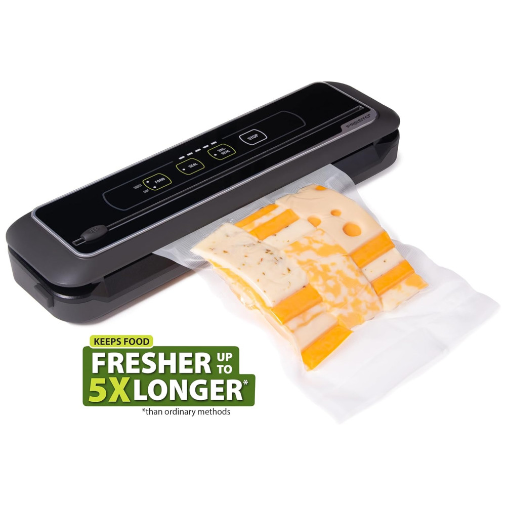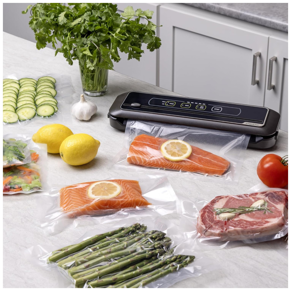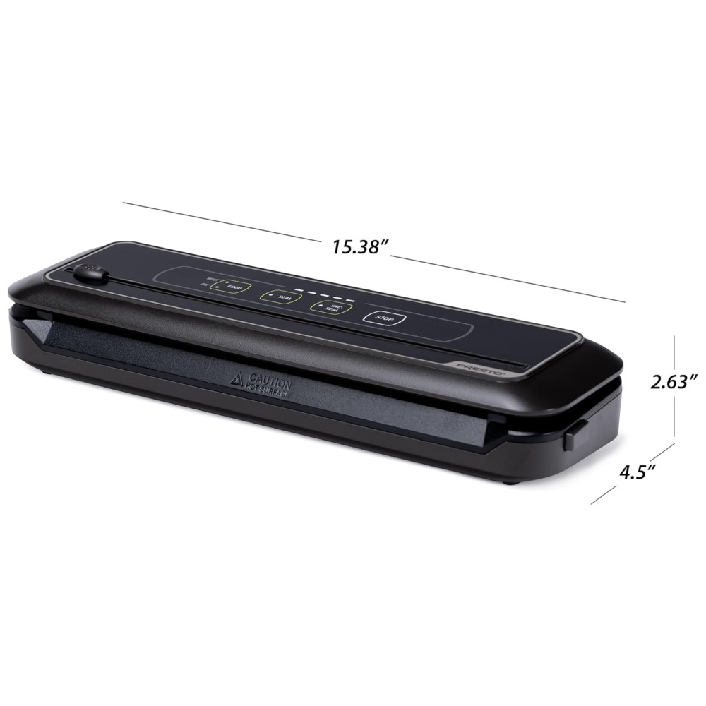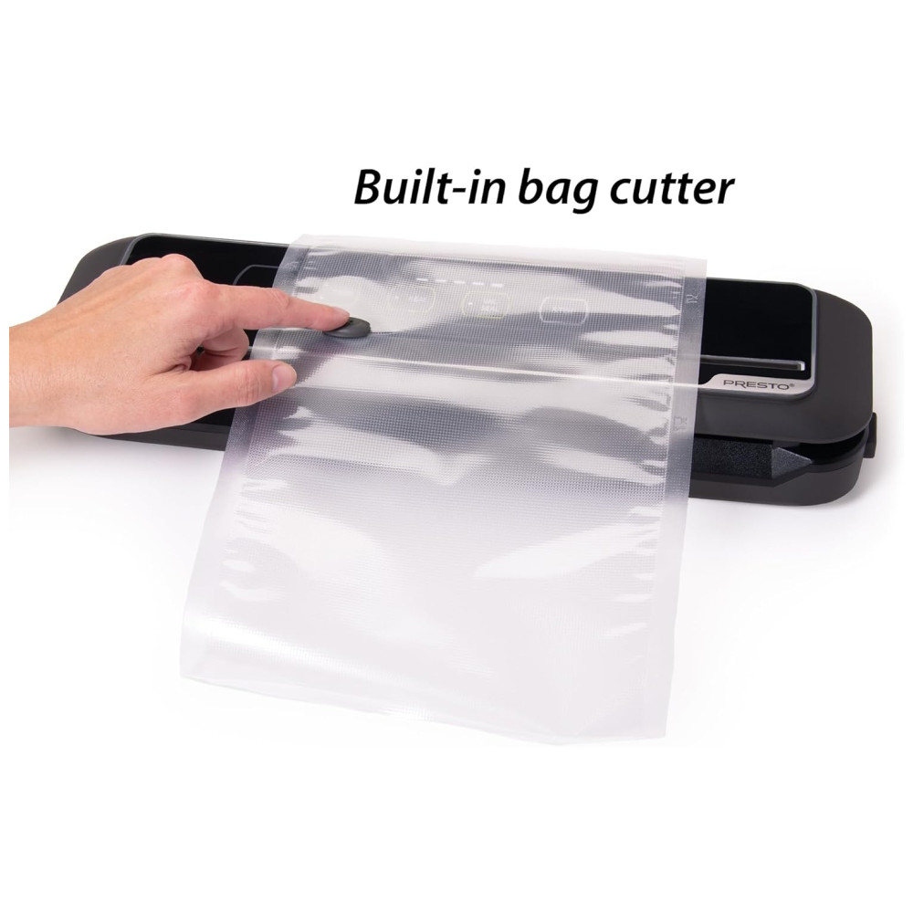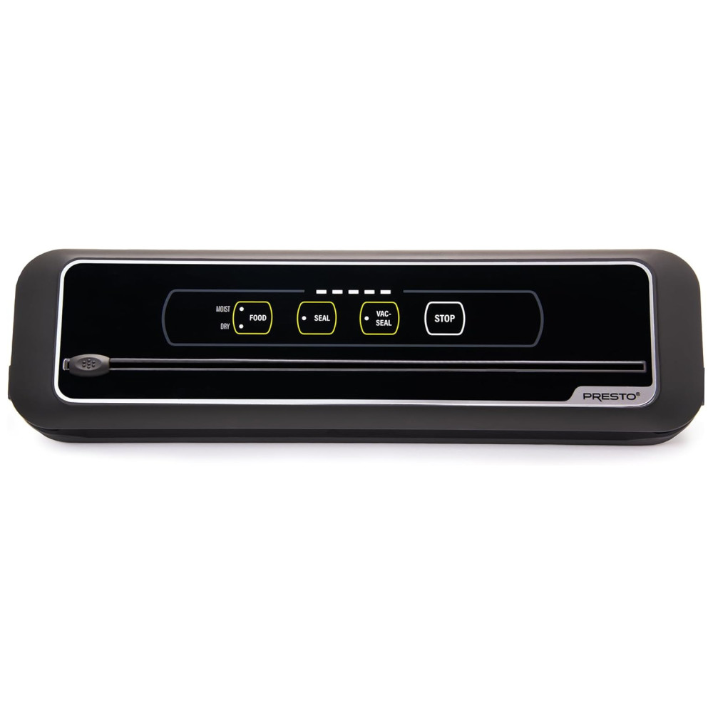 Seladora a Vácuo Elétrica com Configurações Para Alimentos Úmidos ou Secos e Cortador de Sacos Embutido 110V 110W Presto 05621 FreshDaddy Preta