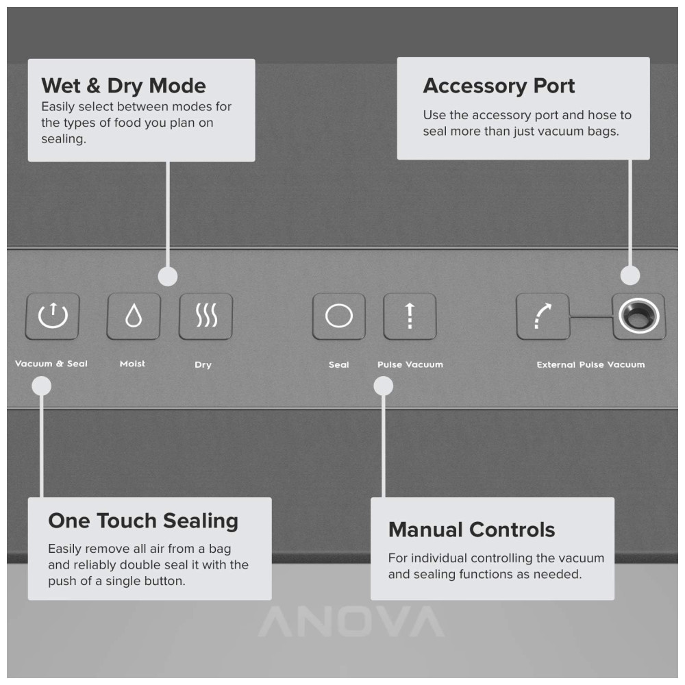 Seladora a Vácuo para Alimentos de Fácil Uso Inclui 1 Rolo de Saco Plástico 110v ANOVA CULINARY ANVS02 US00 Preto