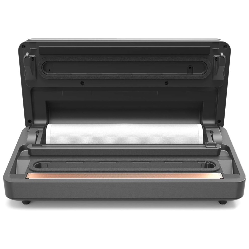 O irmão mais velho e robusto do nosso selador a vácuo de precisão minimalista mais vendido. Espere um vácuo de alta potência, seladora dupla confiável, zenamento e cortador de sacos integrados, uma porta de acessórios para selar recipientes e a capacidade de selar alimentos úmidos sem preocupações tudo com apenas uma mão.