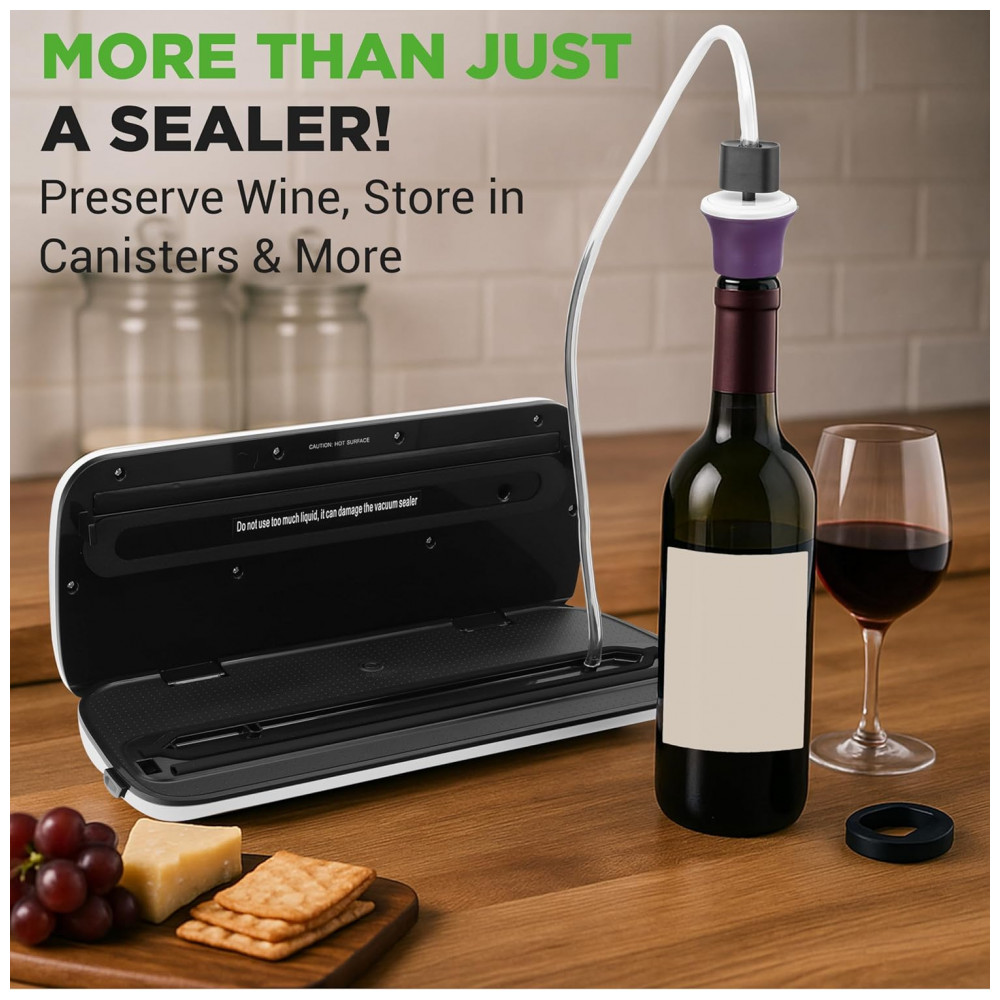 Nome do estilo Seladora a vácuo A selagem a vácuo preserva os alimentos bloqueando o crescimento de mofo, fungos e bactérias responsáveis por estragar o sabor, a aparência e a textura dos alimentos. zenamento e organização Por que ter grandes pedaços de blocos congelados irregulares ou recipientes de comida meio cheios que ocupam muito espaço do freezer, quando você pode empilhar sacos hermeticamente fechados uns sobre os outros Ideal para fazer dieta ou papinha de bebê. Prepare as suas refeições, feche as e congele as. Com a rolha de cortiça incluída no nosso kit inicial, pode voltar a fechar garrafas de vinho meio cheias que, se não forem seladas, perderão provavelmente o seu espírito e acabarão na lata de lixo. Conteúdo da caixa Rolha de vinho Tubo flexível de sucção de cortiça para ar 5 Sacos de vácuo médios 20 x 30cm 1 Rolo de saco de vácuo extra longo 20 x 200cm Especificações técnicas Elemento de sucção de alta potência 110 Watt Força de vácuo , sucção 12L , min Sacos seláveis Poliamida ecologicamente correta resiste à temperatura de alimentos de 100C. Material de construção máximo ABS projetado Comprimento do cabo de alimentação 1 metro Potência 120V Dimensões Peso 1,3kg. Aproveite a versatilidade e a conveniência NutriChef