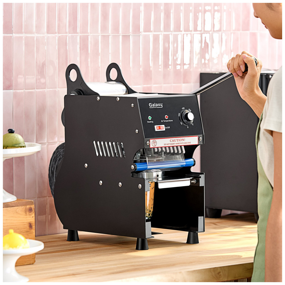 A seladora manual de copos Galaxy CSM-D7 é um equipamento projetado para criar selos em copos de PP/PET com diâmetro de 90 a 95 mm. Opera por alavanca manual com enrolamento manual do filme para a próxima selagem, e possui controles de interruptor e knob de temperatura. Construída em aço inoxidável durável, inclui indicadores luminosos para aquecimento e temperatura atingida, além de ocupar pouco espaço em ambientes internos.