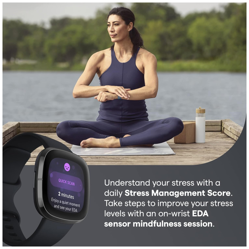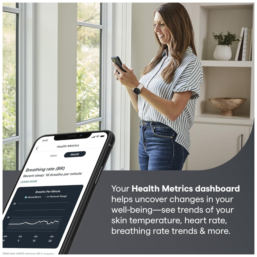 O aplicativo EDA Scan detecta atividade eletrodérmica que pode indicar a resposta do seu corpo ao estresse e um sensor de temperatura da pele integrado registra a sua todas as noites para que você possa ver quando ela varia