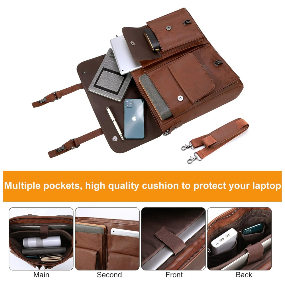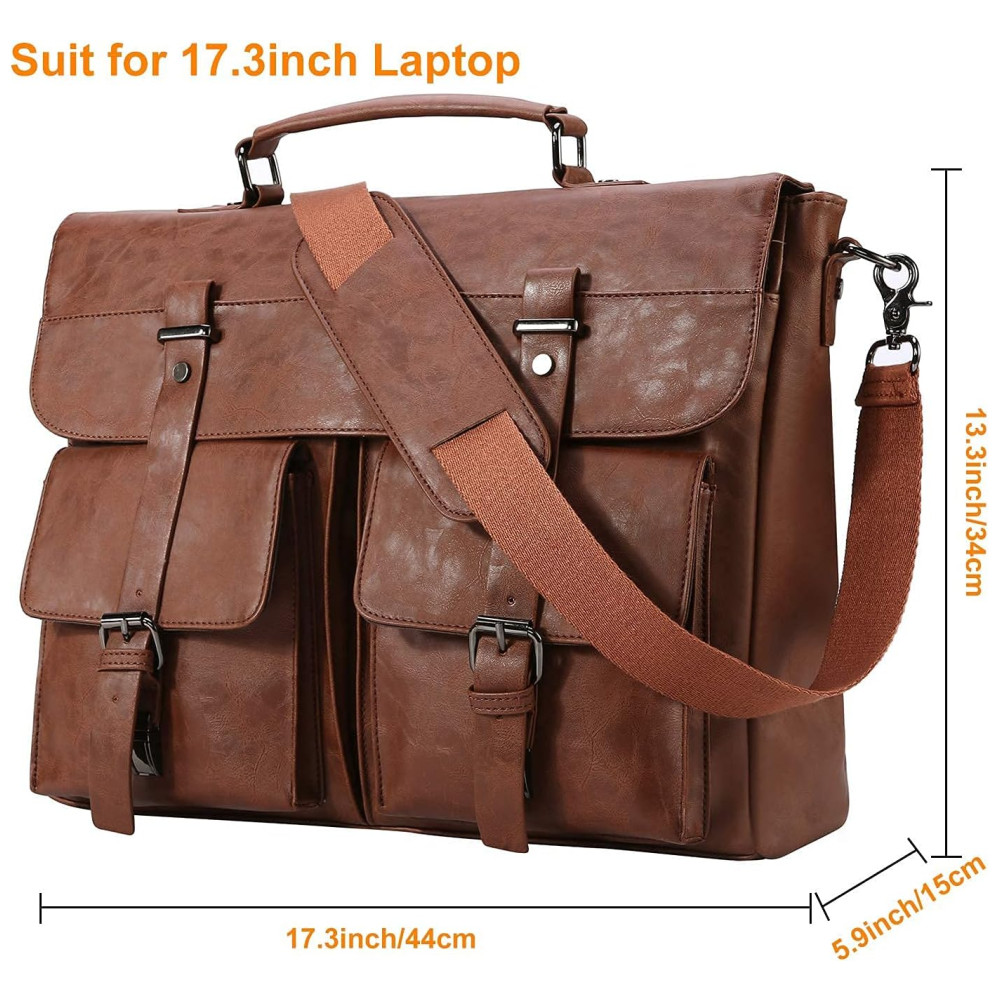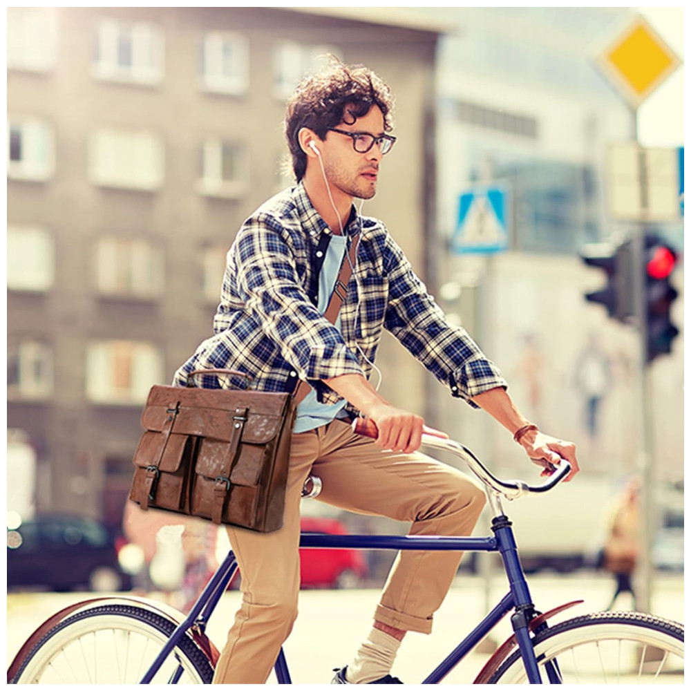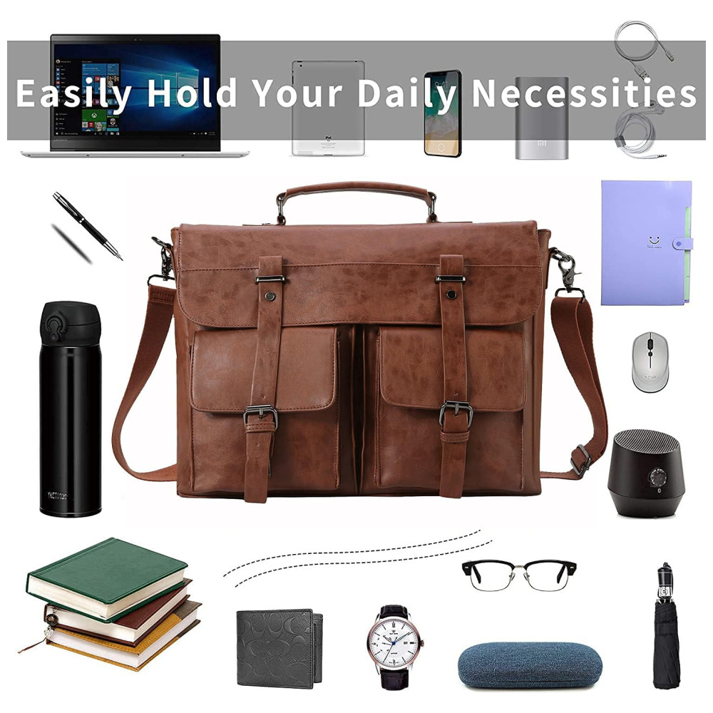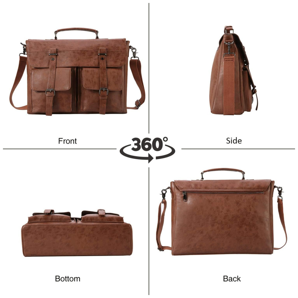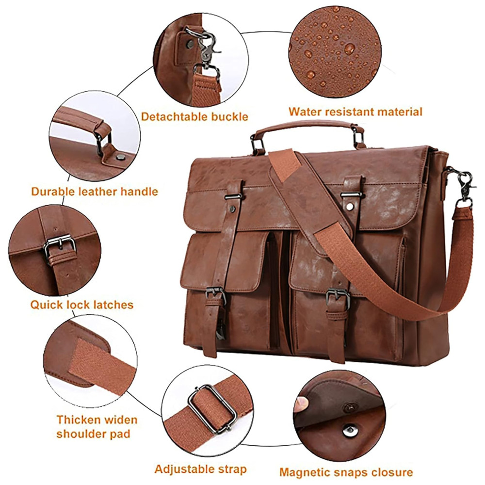 seyfocnia Bolsa de Couro Mensageiro para Laptop Marrom