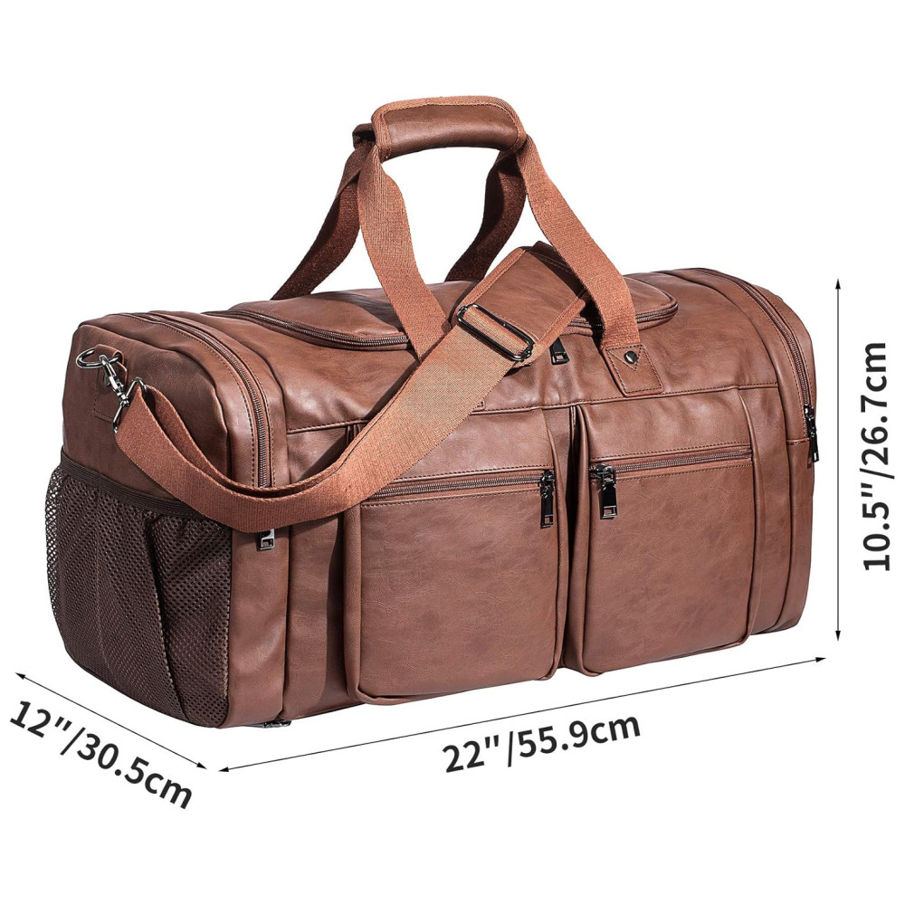 Bolsa de lona superdimensionada feita de couro PU super fibra à prova dágua de alta qualidade 50 x 25 x . Peso 1,5 kg , 3,3 libras. Capacidade grande e superdimensionada 52L. Maior do que a bolsa de ginástica normal bolsa, adequada para 3 4 dias de fim de semana ou viagem de negócios. Estilo clássico unissex perfeito para homens e mulheres