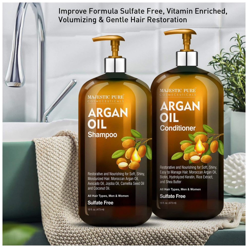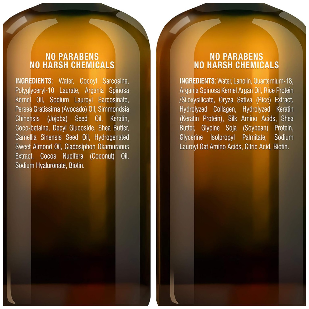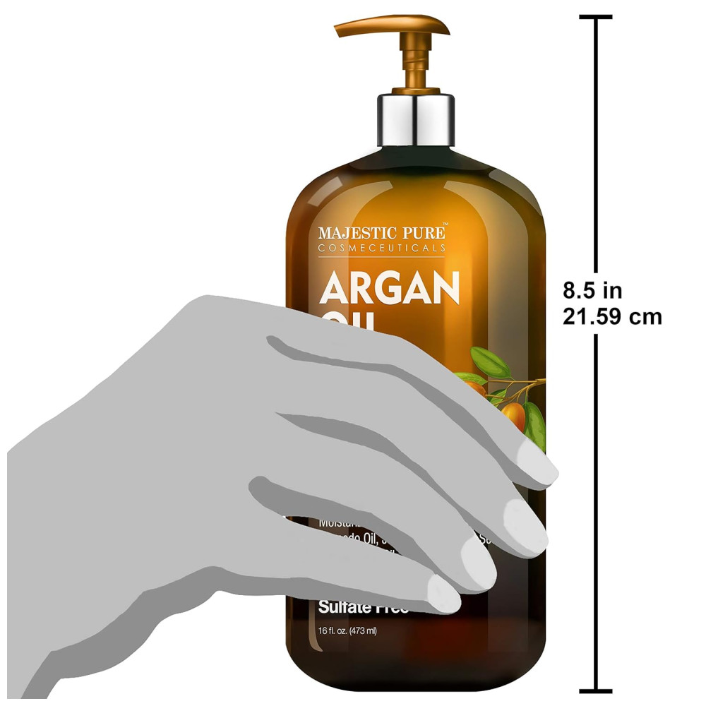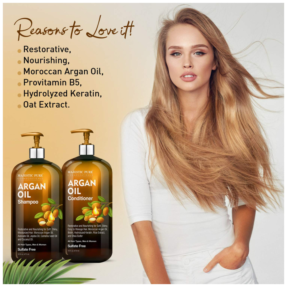 Conjunto de shampoo e óleo de argan Majestic Pure Argan óleo de argan marroquino orgânico feito livre de sulfato não testado em animais Fabricado nos EUA Mistura exclusiva de óleos e ingredientes benéficos Óleo de Argan, Óleo de Abacate, Óleo de Jojoba, Óleo de Semente de Camélia, Queratina Botânica e Óleo de Amêndoa e Óleo de Coco AVISO DE SEGURANÇA Esfregue uma quantidade muito pequena no interior da área do cotovelo para testar qualquer reação alérgica antes de usar. Evite o contato com os olhos, mantenha fora do alcance das crianças. Se estiver grávida, consulte o seu médico antes de usar. Faz um grande presente para todos Este potente conjunto de fórmulas combinadas ajuda a fornecer brilho e uma aparência saudável aos cabelos com sua abundância de vitamina E, caroteno e ácidos graxos essenciais. O óleo de amêndoa, rico em proteínas, ajuda a acalmar as áreas secas e irritadas do couro cabeludo o Shampoo de Óleo de Argan e o Conjunto de Condicionadores de Óleo de Argan são livres de crueldade