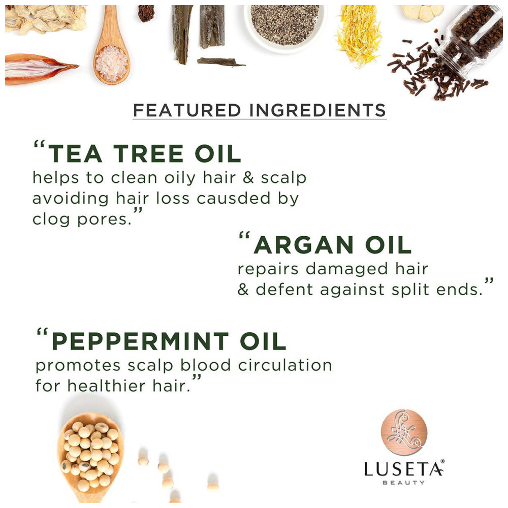 O ÓLEO DE ÁRVORE DE CHÁ ajuda a limpar os cabelos oleosos e o couro cabeludo, evitando a perda de cabelos causada por obstrução dos poros Óleo de ARGAN contribui para reparar os cabelos danificados e se defender contra pontas duplas O PEPPERMINT OIL pode promover a circulação sanguínea do couro cabeludo para cabelos mais saudáveis de cor e ideal para todos tipos de cabelos, condicionador de xampu sem sulfato shampoo e condicionador de qualidade para salão de beleza bloqueiam na sua cor