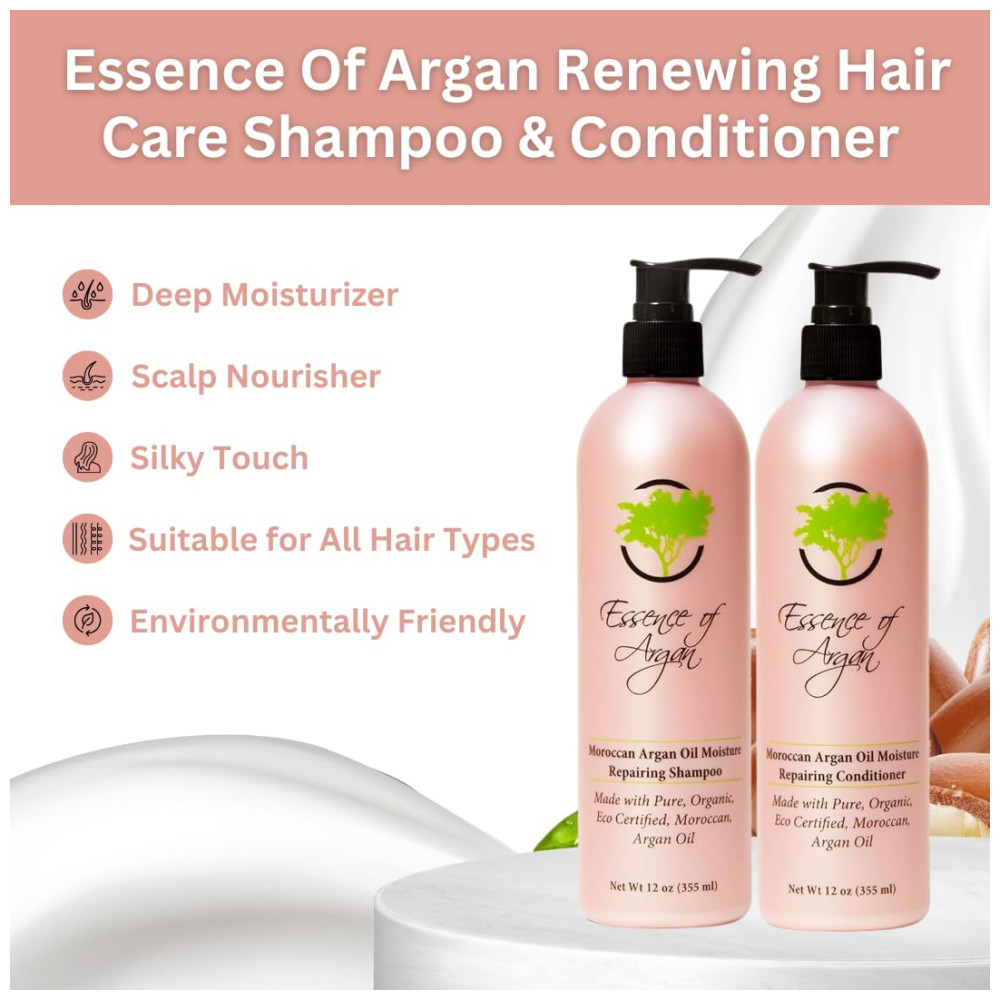 Shampoo e Condicionador de Óleo de Argan Marroquino Essência 100 Pura Homens e Mulheres 355ml