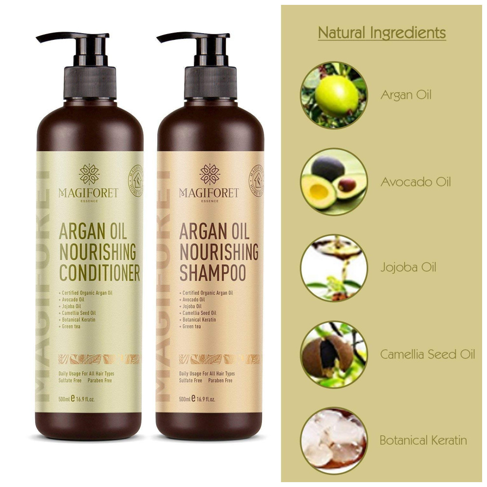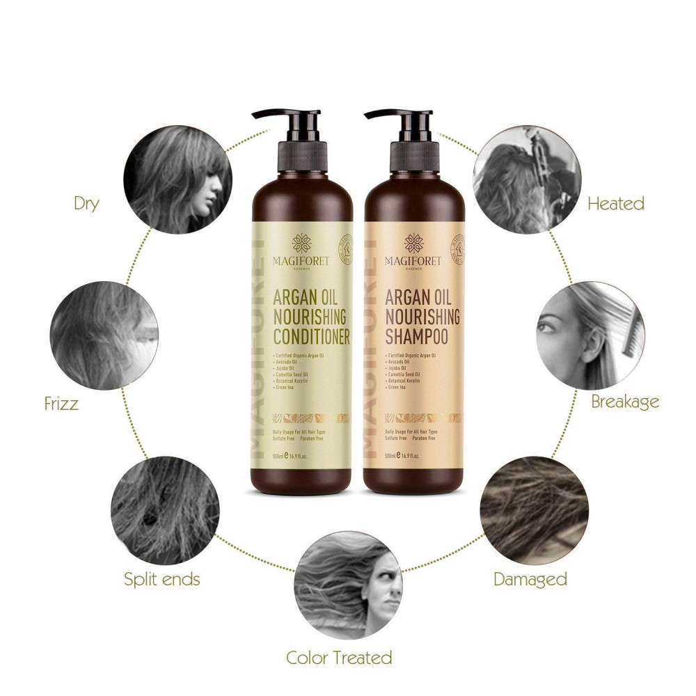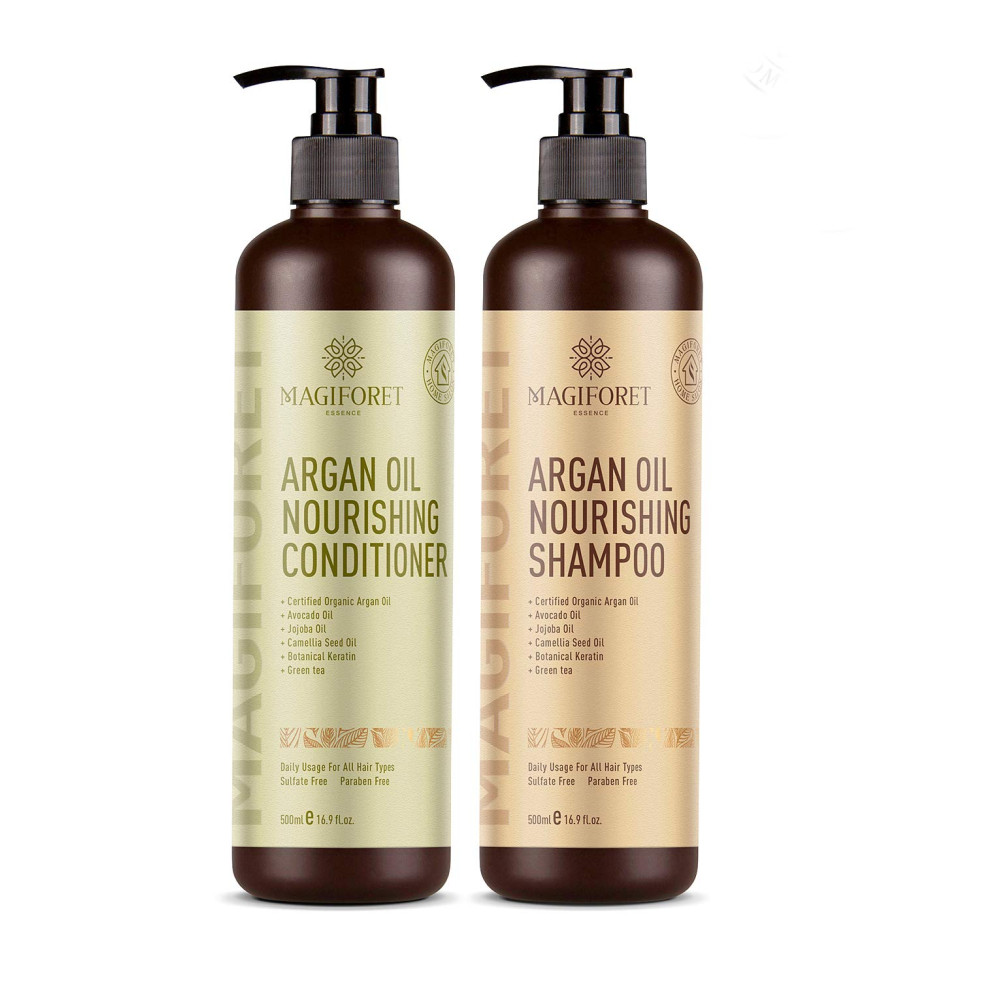 Remodele e recondicione sua vida com os conjuntos de xampu e condicionador de argan orgânico MagiForet são shampoo e condicionador nutritivo e natural de alta qualidade. Eles desembaraçam, brilham e corrigem os cabelos secos e danificados, mantendo os cabelos macios, macios, brilhantes, livres de amaranhados e gerenciáveis. A fórmula de ameixa protetor solar ajuda a reparar e intensificar o cabelo. E o perfume bonito dura o dia inteiro. Ingredientes da natureza A fórmula natural do produto é resultado de pesquisas e cuidados de design. Cada ingrediente natural nos conjuntos é proveniente de seu país de origem. O ingrediente principal, o óleo de argão, é importado do local onde é encontrado na sua melhor e mais pura forma, em Marrocos. A fórmula também consiste em óleo de abacate para os cabelos mais, óleo de jojoba para a fórmula mais forte, óleo de semente de camélia e queratina botânica. Uso diário Os aparelhos não são pegajosos. Sim, você leu certo O shampoo ou mais nutritivo e, é oleoso condicionador e de usar. Mas esses produtos são salvos, são para uso e sem uso diário não é seu problema. Eles são melhores para todos os tipos de cabelos, especialmente para cabelos secos, frisados, finos, com duplas, tratados com pontas e quimicamente, danificados, quebrados, com cabelos aquecidos. Eles são s para núcleos, sem sulfatos e sem fosfato Cheiro agradável Quem não ama shampoo e condicionador com um cheiro agradável Mas, infelizmente, o condicionador mais natural e o shampoo cheiram mal. Estes produtos são infundidos com uma forte, quente e para deixar seu cabelo com um cheiro maravilhoso. A lembrará o perfume de luxo e dará a você outro motivo para usar o condicionador o dia inteiro